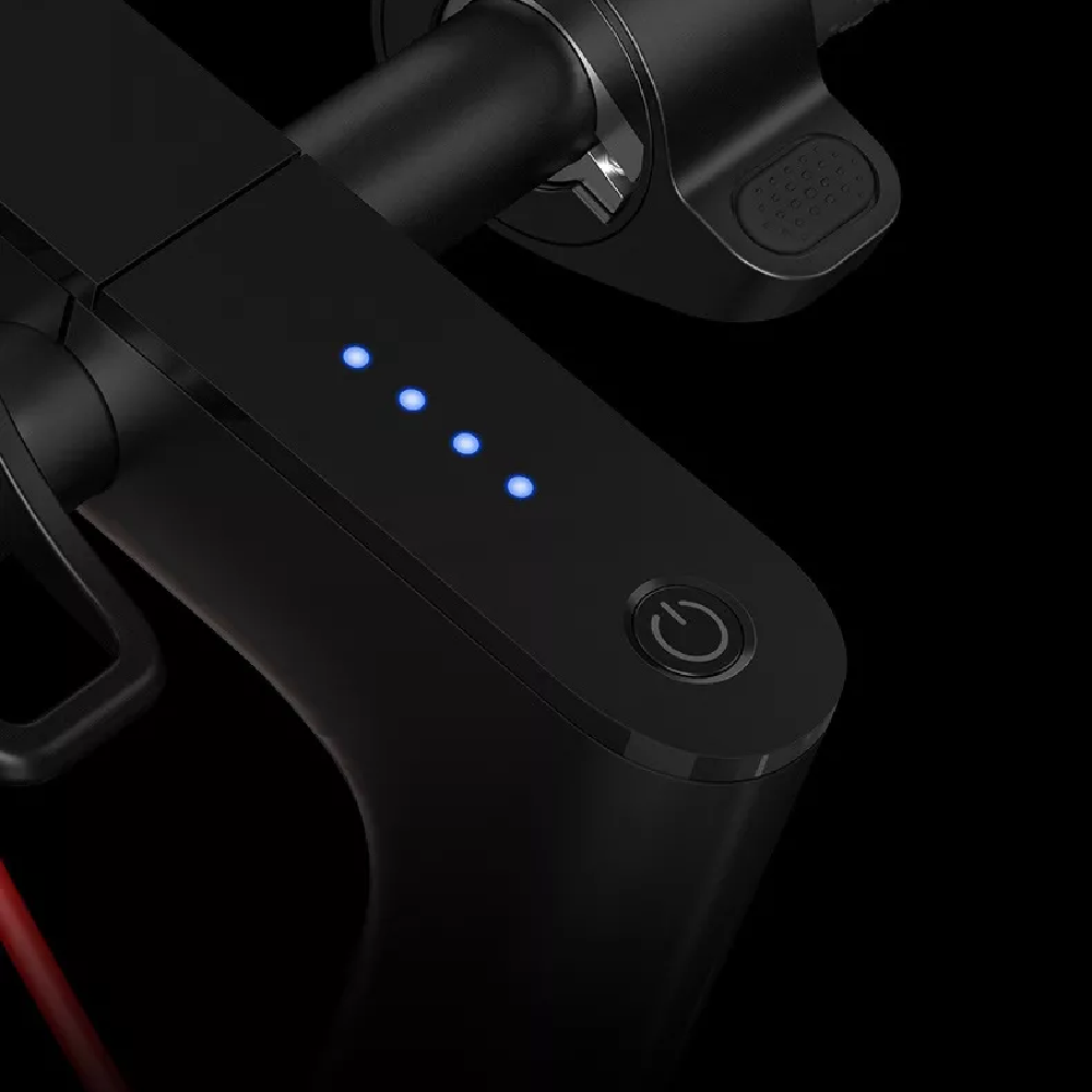 そのため、すべての充電レベル ライトが点滅し始め、その後点灯しなくなります。 最低充電レベル インジケータは白または緑です。 車両が正常に作動しているとき、LED は白く光ります。 スクーターが省電力モードで動作している場合、インジケーターは緑色に点灯します。 (節電モード時:最高速度18km/h、速度調整がスムーズで初心者にも優しい)