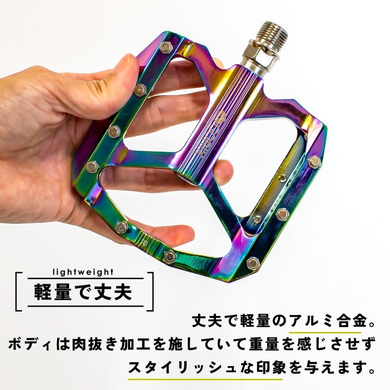 ファッション性が高く飽きがこないおしゃれなデザインのフラットペダルです。