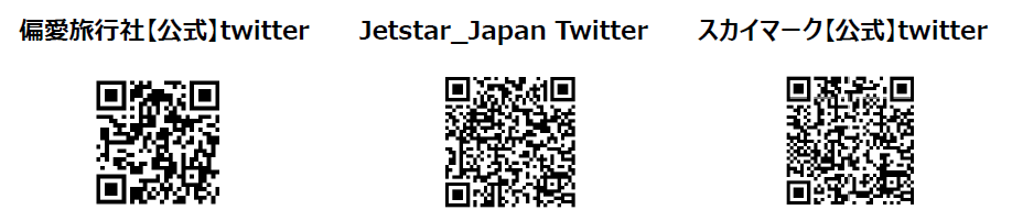 下地島空港(宮古島)編の場合は、スカイマーク【公式】Twitterと偏愛旅行社【公式】Twitterを