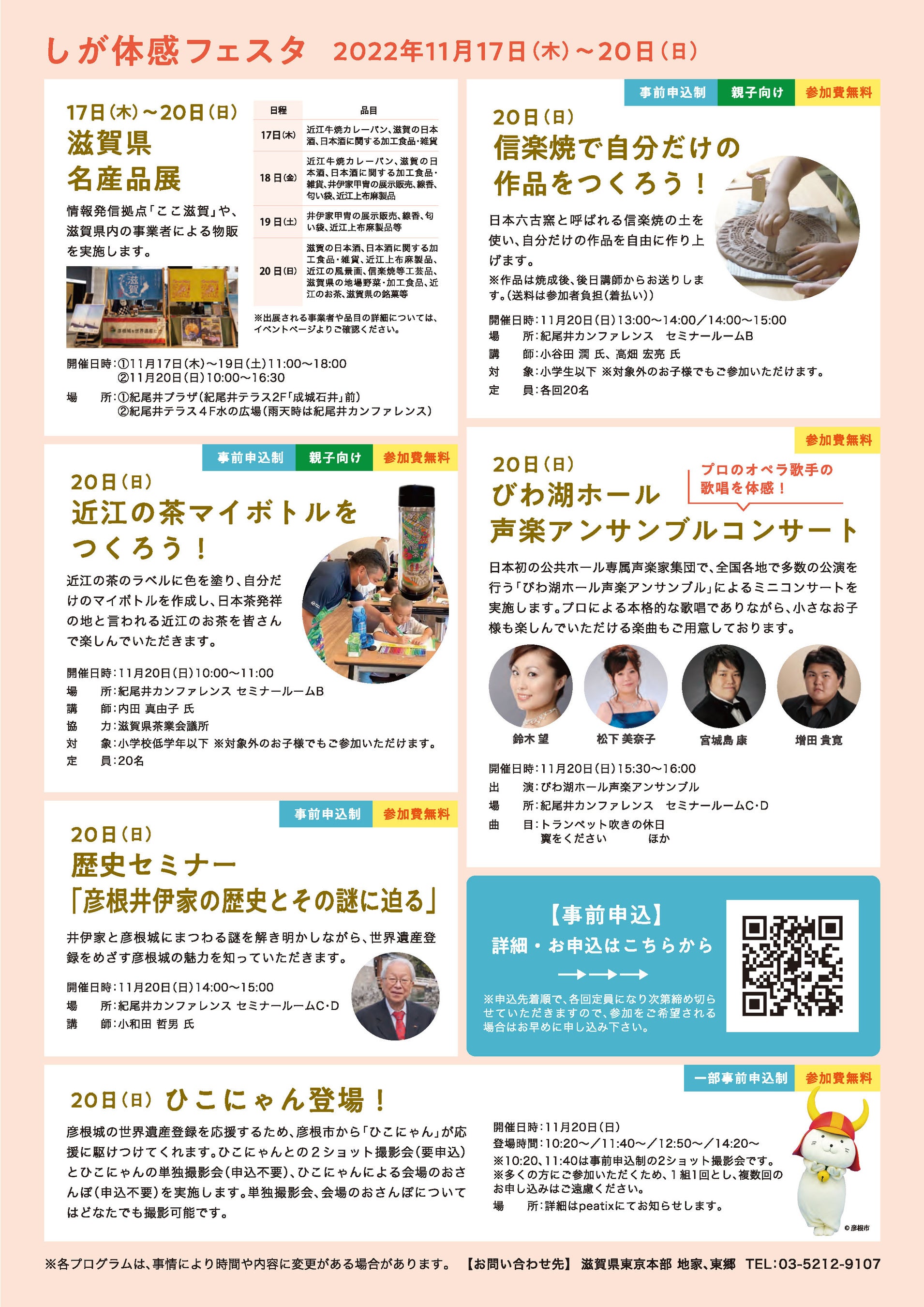 詳細の記載、体験活動等の申込受付はPeatix(https://shigafesta-kioi.peatix.com)にて行います。