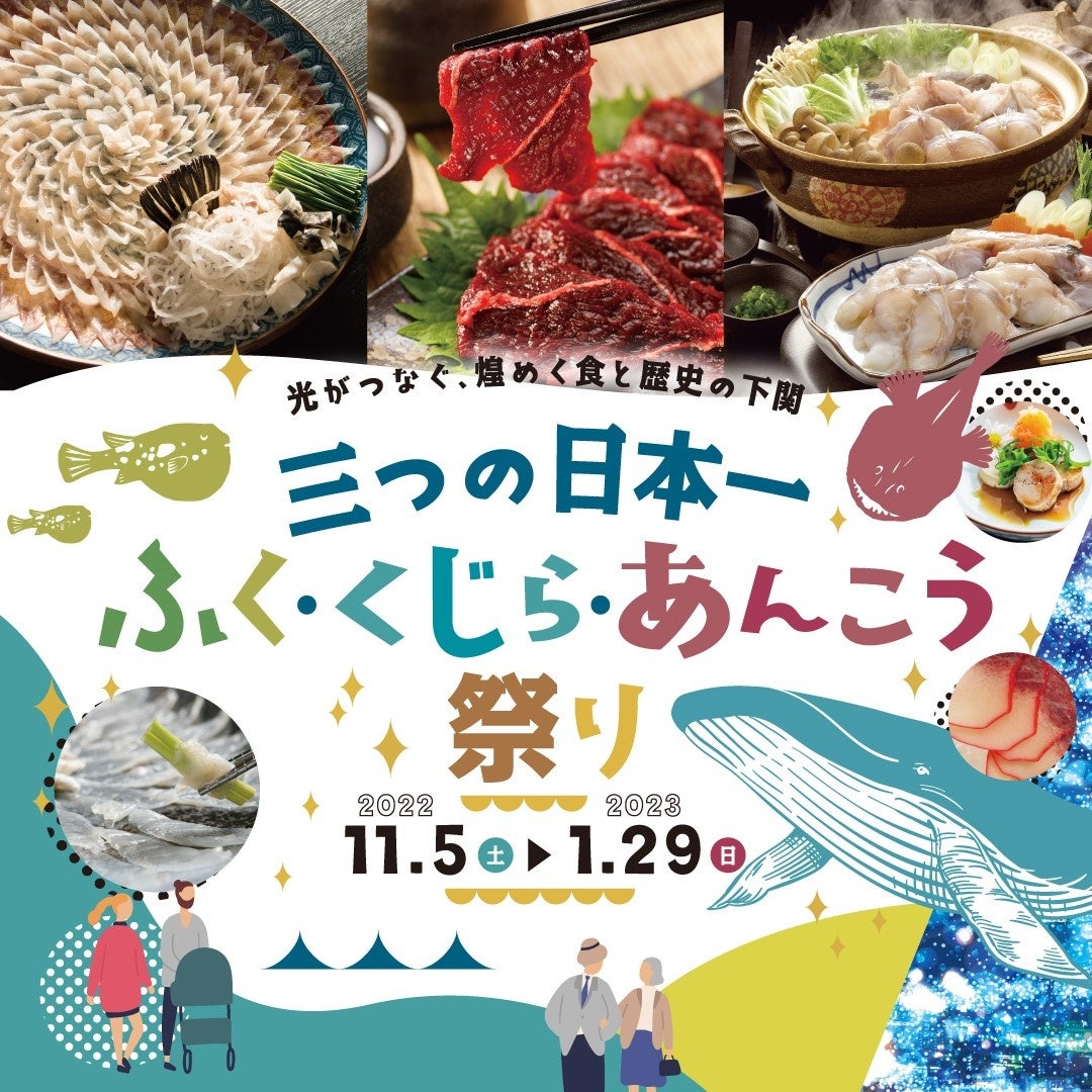 ※詳細は下記の「光がつなぐ、煌めく食と歴史の下関 三つの日本一 ふく、くじら、あんこう祭り」ホームページをご覧ください。