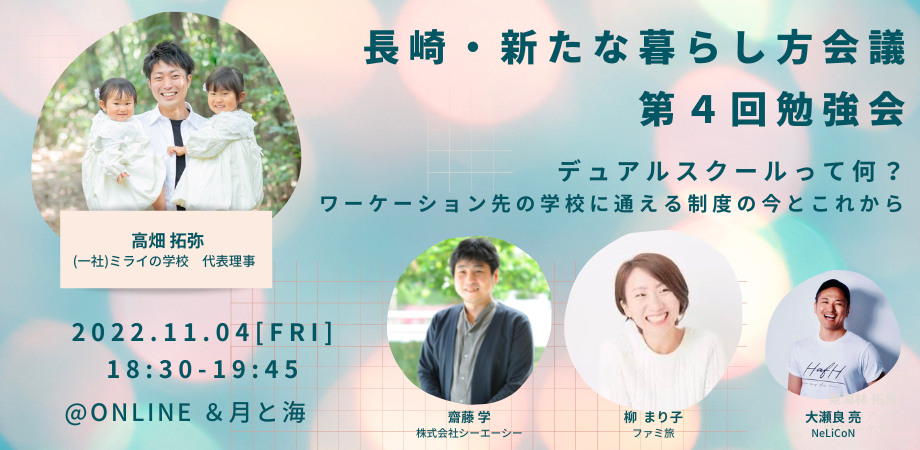 (参考)2023年11月4日(金)第4回勉強会開催「長崎・新たな暮らし方会議 第4回勉強会 〜 デュアルスクールって何?ワーケーション先の学校に通える制度の今とこれから ~」