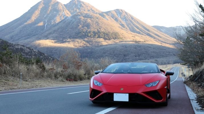 九州随一のレーシングコース「オートポリス」を占有しての高速走行に続き、阿蘇くじゅう連山から菊池渓谷を走り抜け、旅の最終目的地である天草「天空の船」を目指します。