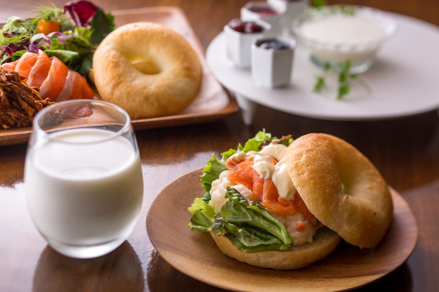 【朝食:2種のベーグルサンド】