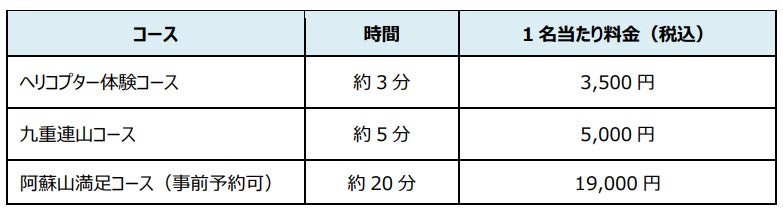 Space Aviation株式会社(読み:スペース アビエーション、本社:京都市伏見区、代表取締役社長:保田 晃宏、以下「当社」)は2022年11月4日(金)より、瀬の本高原 瀬の本レストハウス及び道の駅「あそ望の郷くぎの」において実施するヘリコプター遊覧フライトの予約受付を開始致します。3,500円の体験コースをはじめ、阿蘇山を周回するロングフライトや、昨年3月に架橋された新阿蘇大橋を望む地震復興コースなど、計8コースを造成しました。