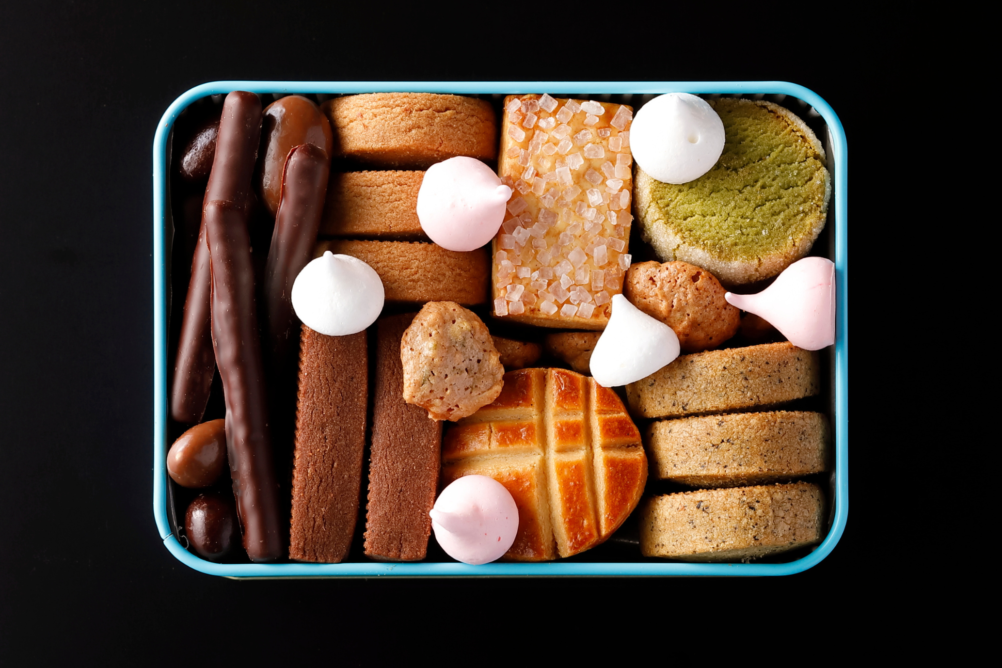 お持ち帰りいただく『SATSUKIチョコレート&クッキー』は、”美味と健康”をテーマに大豆生まれの豆乳クリームバター「ソイレブール」や、スーパーフードとして名高い「カスカラパウダー」を使用したこだわりのクッキーを詰め合わせたギフトスイーツです。ホテルロゴをあしらった鮮やかなブルーの缶は、クッキーをお愉しみいただいた後もさまざまな用途でご利用いただけます。