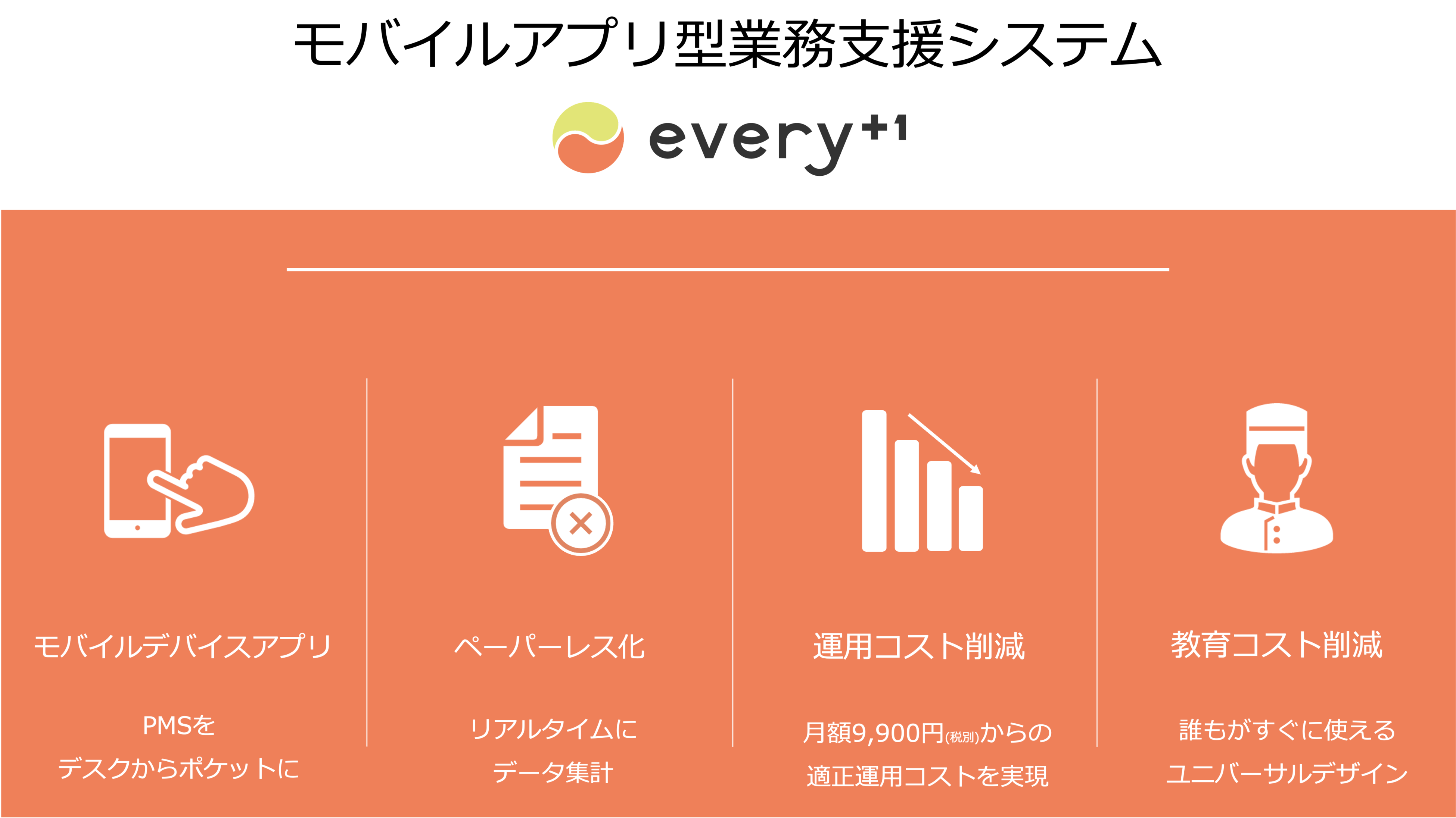 そこで「every+1(エブリワン)」では、本当に必要な機能を厳選し、シンプルなシステムをゼロベースで開発いたしました。