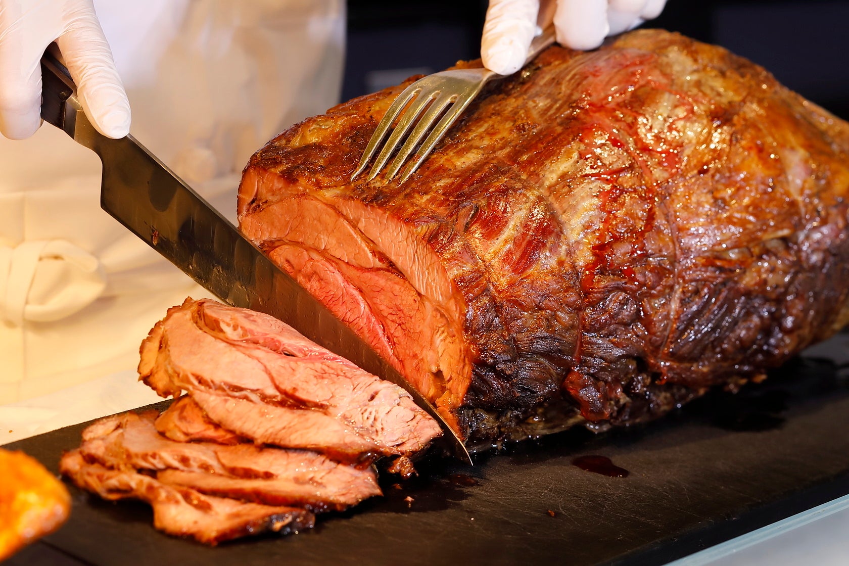 じっくりと焼き上げたジューシーな旨みを閉じ込め、ほんのりと赤みが残る程度に熱の通りを調節し、口の中で肉汁が染み出すように柔らかく焼き上げた、ホテル伝統の味を代々受け継ぐ「ローストビーフ」は香り高く、噛むほどに口の中に広がる赤身本来の旨みが際立つ逸品。肉は美味しさを熟知したシェフにより、お客さまの目の前で、お好みのカットに切り分けて提供いたします。