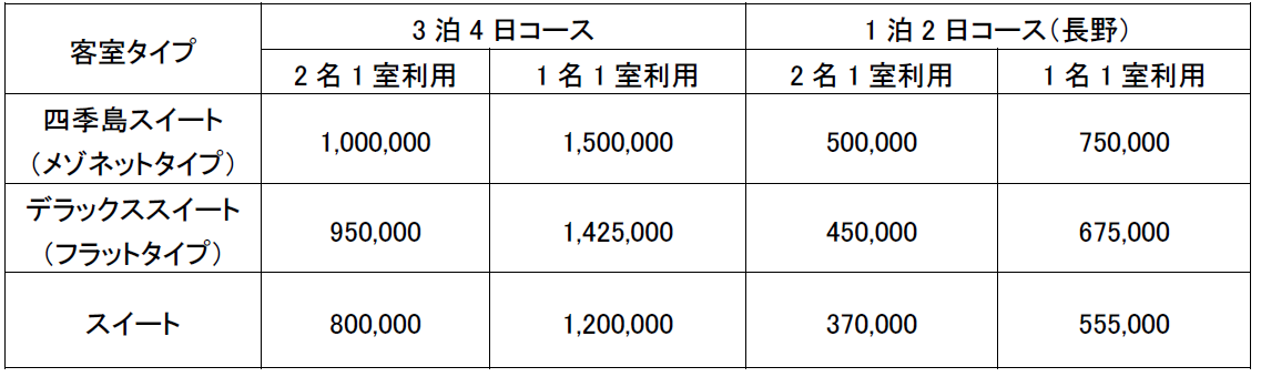 (2)1泊2日(長野)コース ※コース詳細はホームページをご参照ください。https://www.jreast.co.jp/shiki-shima/