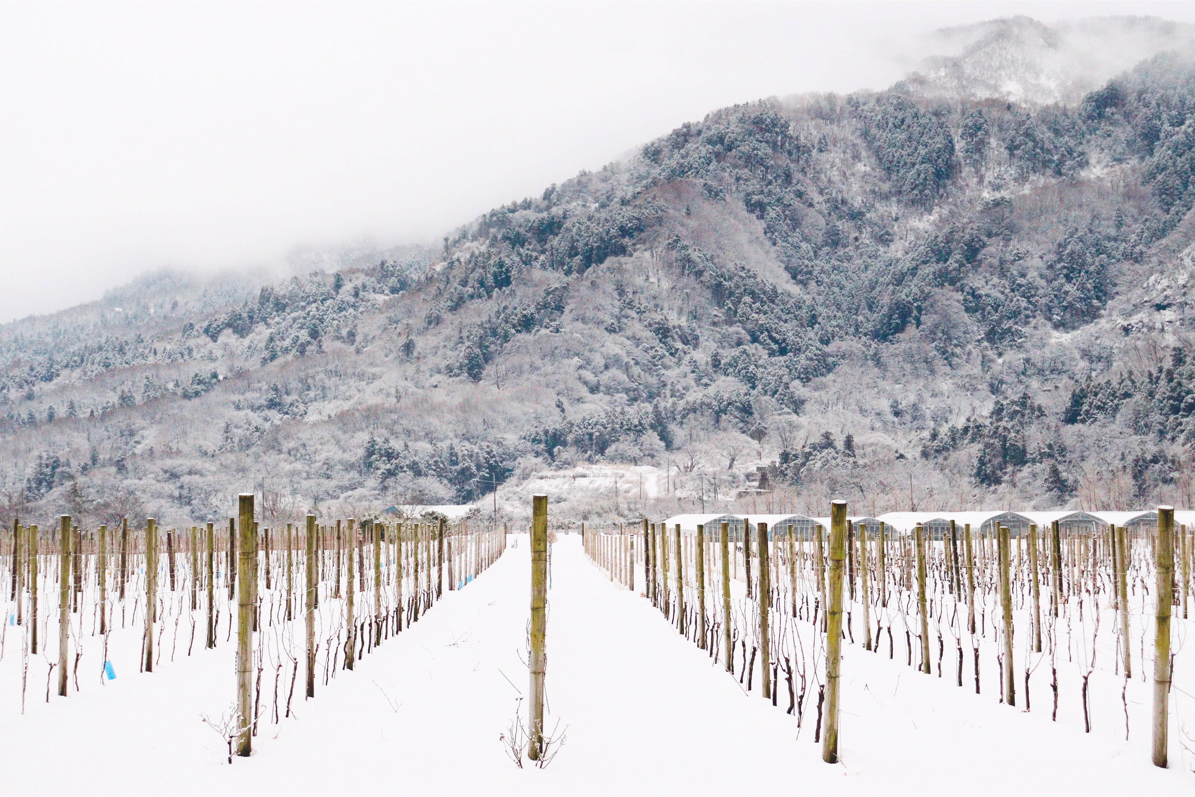 剪定を終えたぶどう畑はいつにも増して整然として、静かに春の訪れを待っているようです。