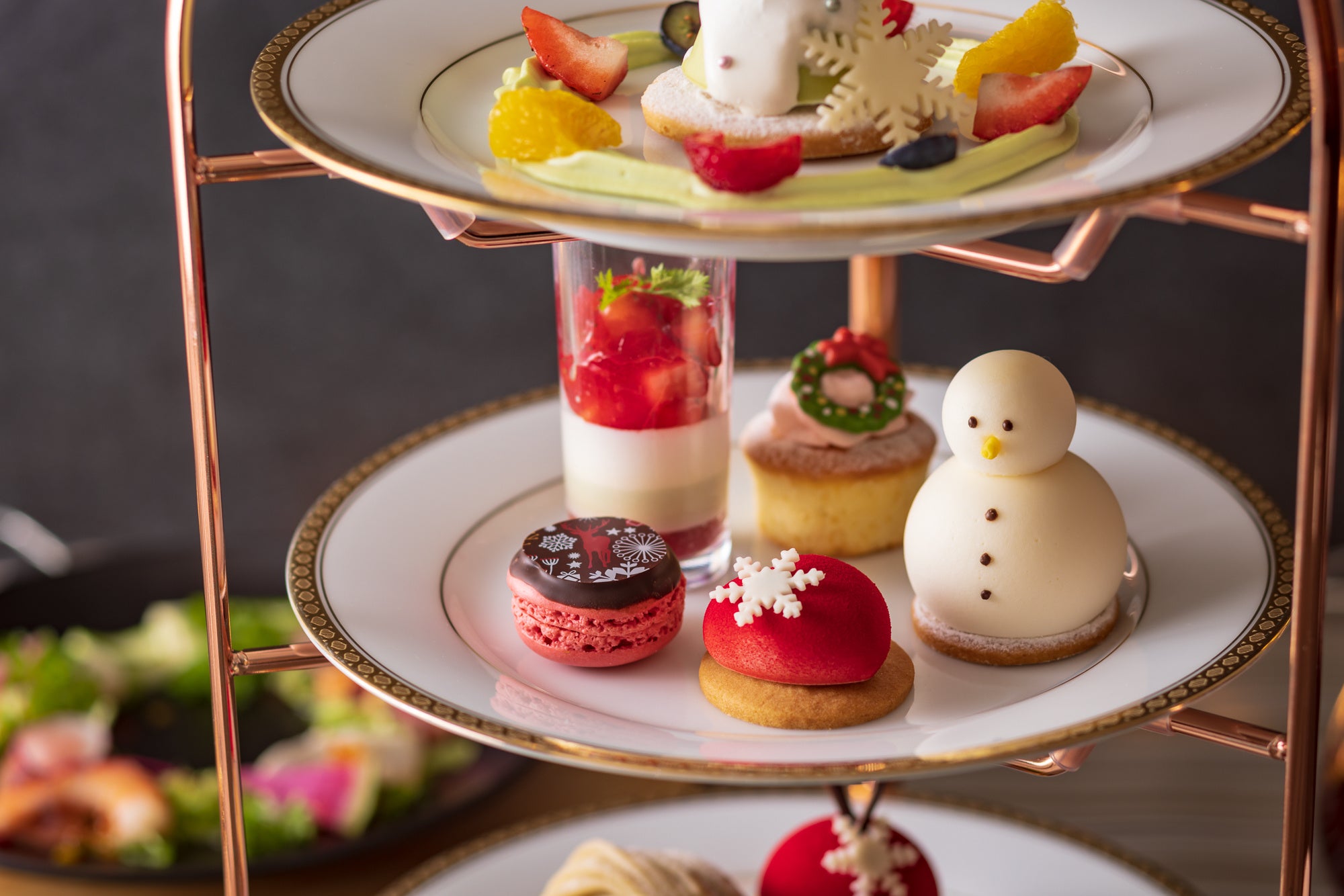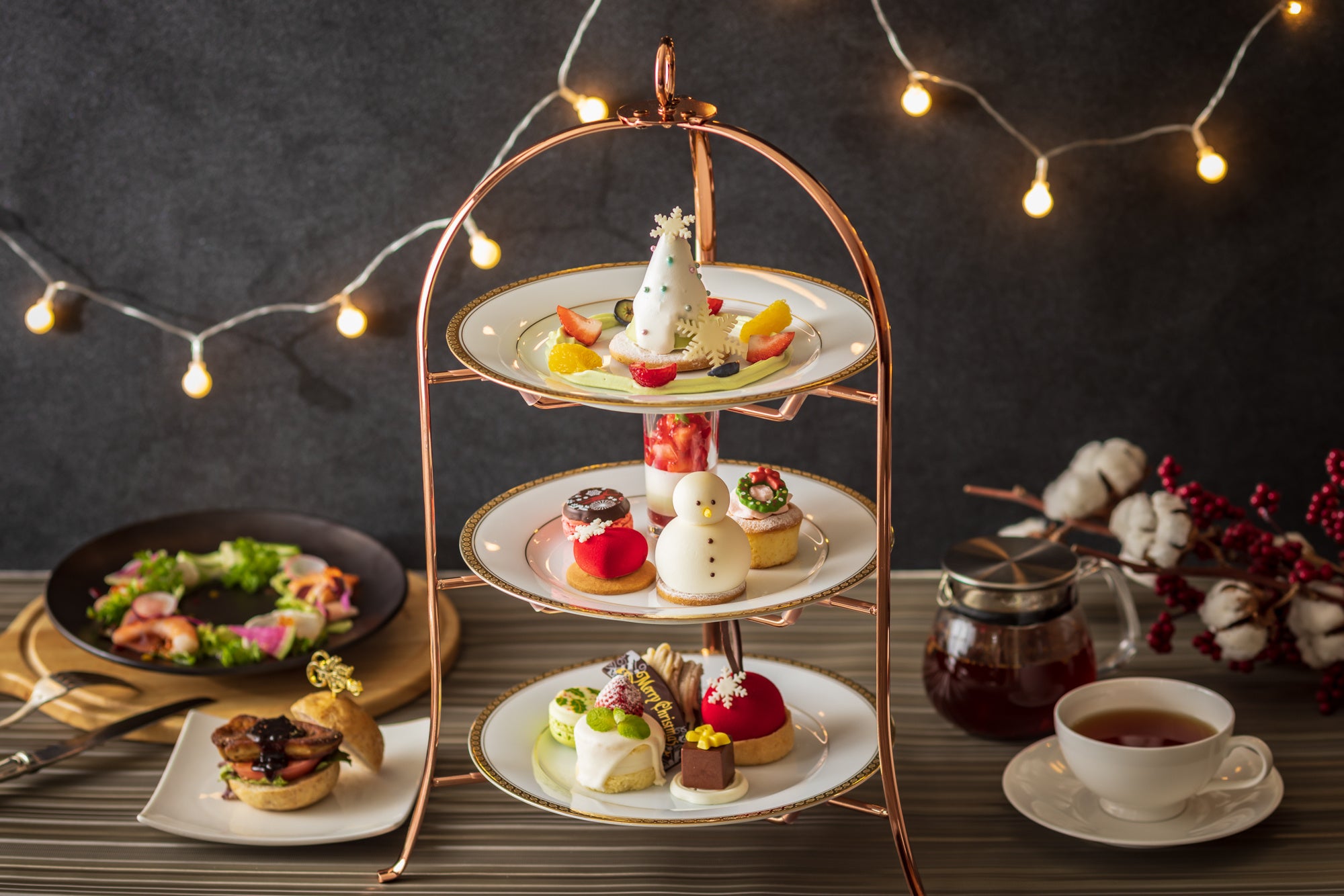 チョコクリスピーの食感が楽しいクリスマスツリーに見立てたピスタチオのムースや優しい香りの柚子がアクセントのレアチーズのスノーボールオーナメント、爽やかなヨーグルトムースとリンゴの酸味がベストマッチした可愛らしいスノーマンなど、クリスマス気分を盛り上げるさまざまなスイーツをお楽しみいただけます。セイボリーには昨年もご好評いただいた、世界三大珍味のフォアグラをサンドし、トリュフソースを添えたミニフォアグラバーガーをご用意いたしました。目の前に広がる海を眺めながら、笑顔溢れる癒しのひとときをお楽しみください。