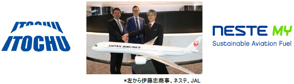 ・国内での取り組みとして、伊藤忠商事とネステが製造したSAFを日本に輸入調達する契約を締結し、JALが11月 18日に運航を予定している、東京(羽田)-沖縄(那覇)線のサステナブルチャーターフライト(*2)に搭載します。