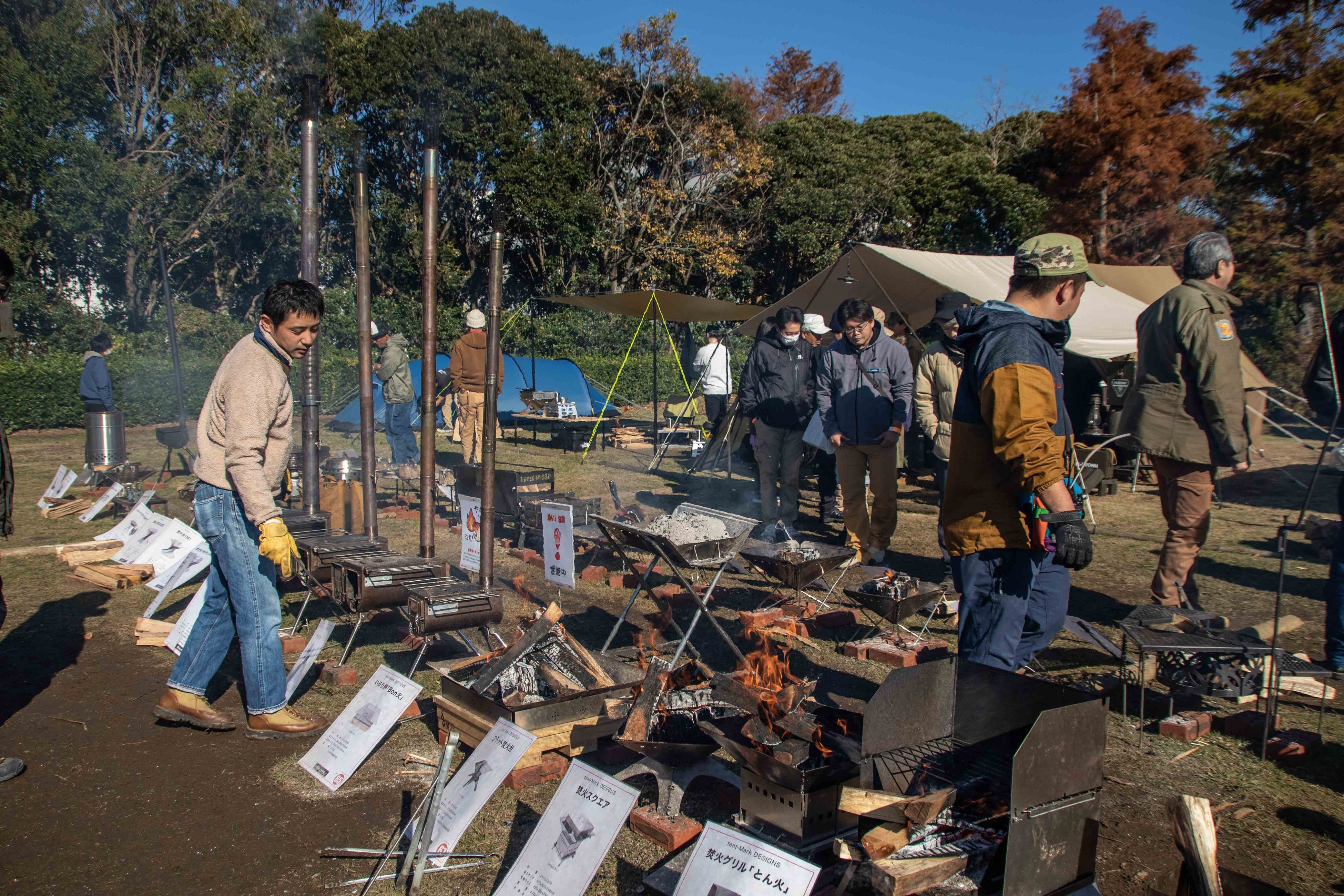 本イベントのメイン「試焚火」。 焚火台を試そう!と、国内で販売されている焚火台と薪ストーブ(アウトドア用)の多くを陳列。 今年は70種以上のラインナップがずらっと揃います。お客様は実際に焚火台に火を焼べることができ、大きさや使いやすさを試すことができ ます。販売店では絶対にできない「試焚火」は本イベントのメインコンテンツです。 2022年12月時点で本イベントでしか実演を見ることができないプロトタイプ(未発売モデル)の焚火台も登場します!お客様からの気になる焚火台についてのご質問にも回答いたします。 また、陳列した焚火台の一部をご購入頂けます。 当日は陳列された焚火台からNo.1を決める「焚火台人気投票」を行います。 No.1に選ばれた焚火台のお客様プレゼント企画も開催します。