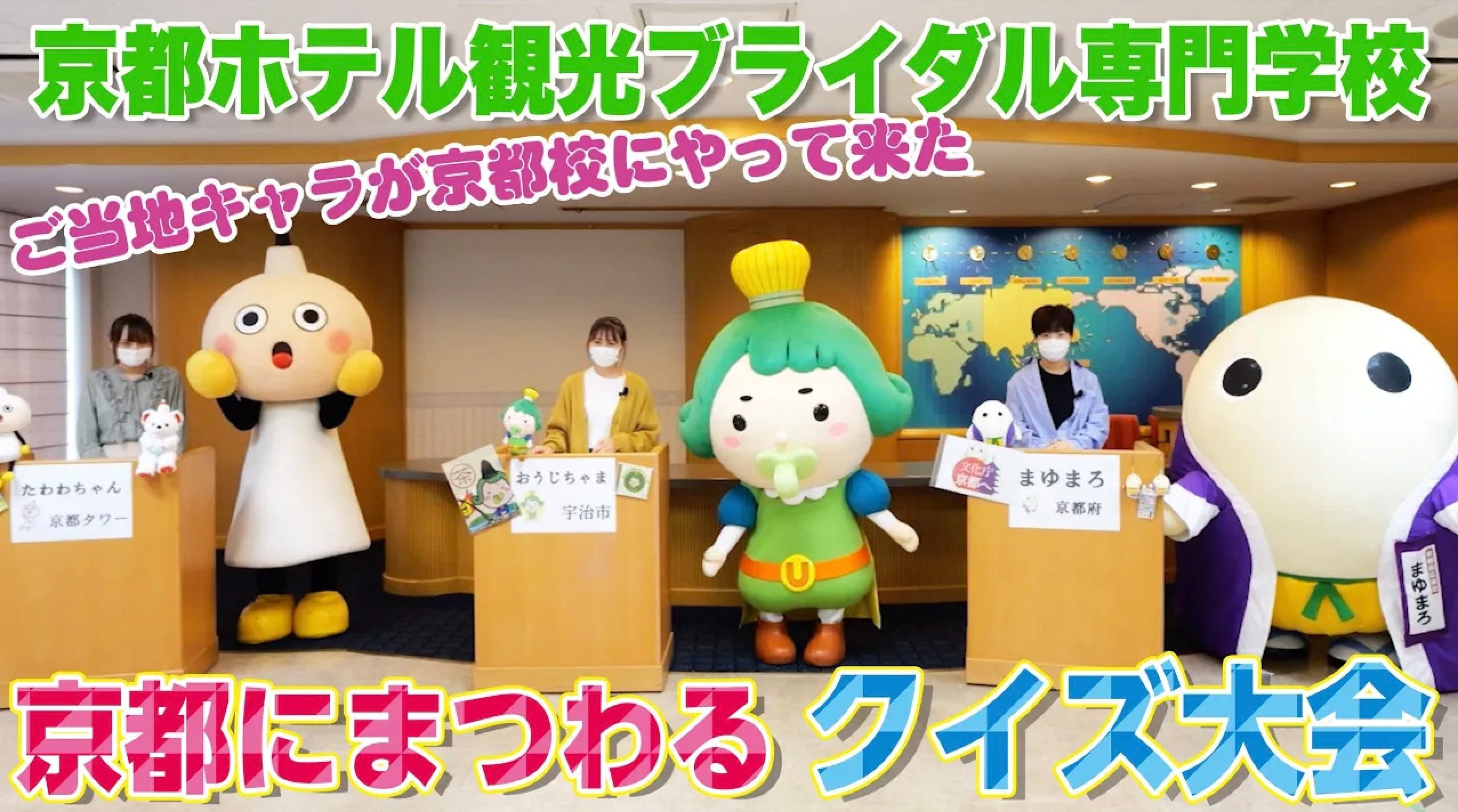 今回は、特別編ということで、旅行医学科の学生が中心となり、京都ご当地キャラクター「まゆまろ」「おうじちゃま」「たわわちゃん」らとコラボレーションした動画を制作、発表しました!