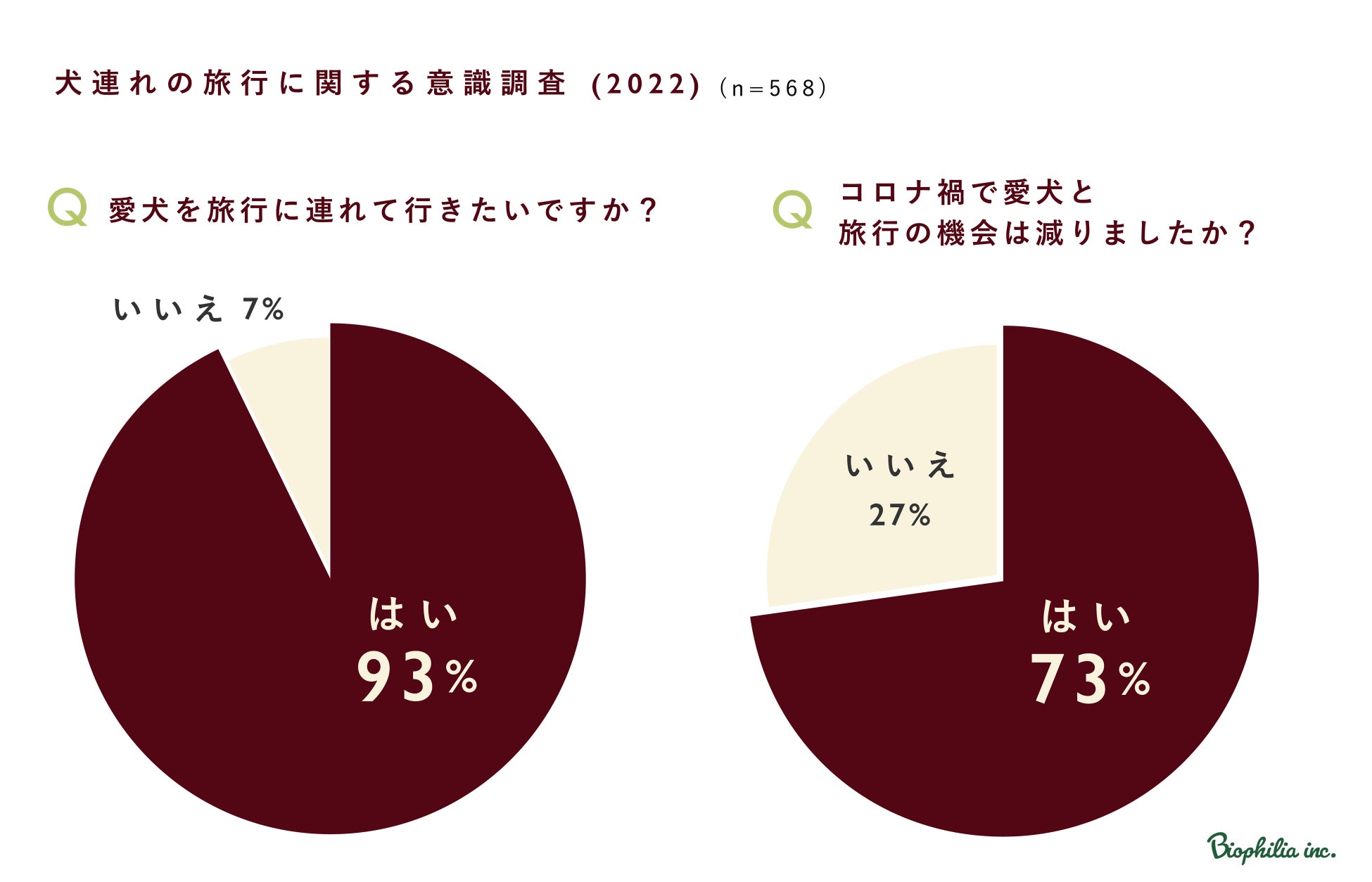 コロナ禍で新たにペットをお迎えした家庭が増えたことや、近年ペットの家族化が加速したことで、愛犬と一緒に旅行したい飼い主は93%(※4)と高い一方、コロナ禍で愛犬との旅行が減ったと答えた飼い主は73%に上ります。