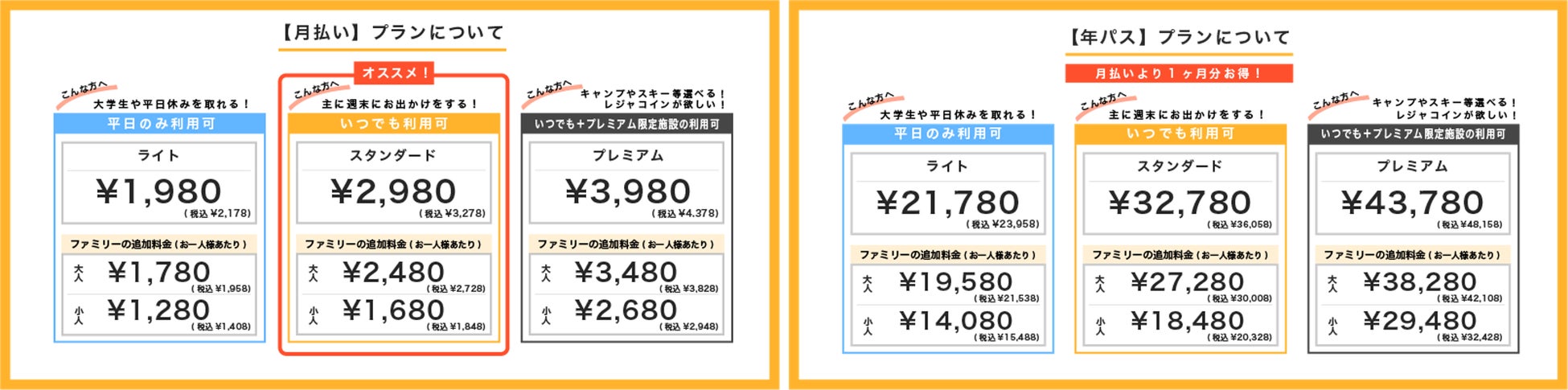 サービス内容:国内110施設以上のレジャー施設を定額で何度でも利用可能