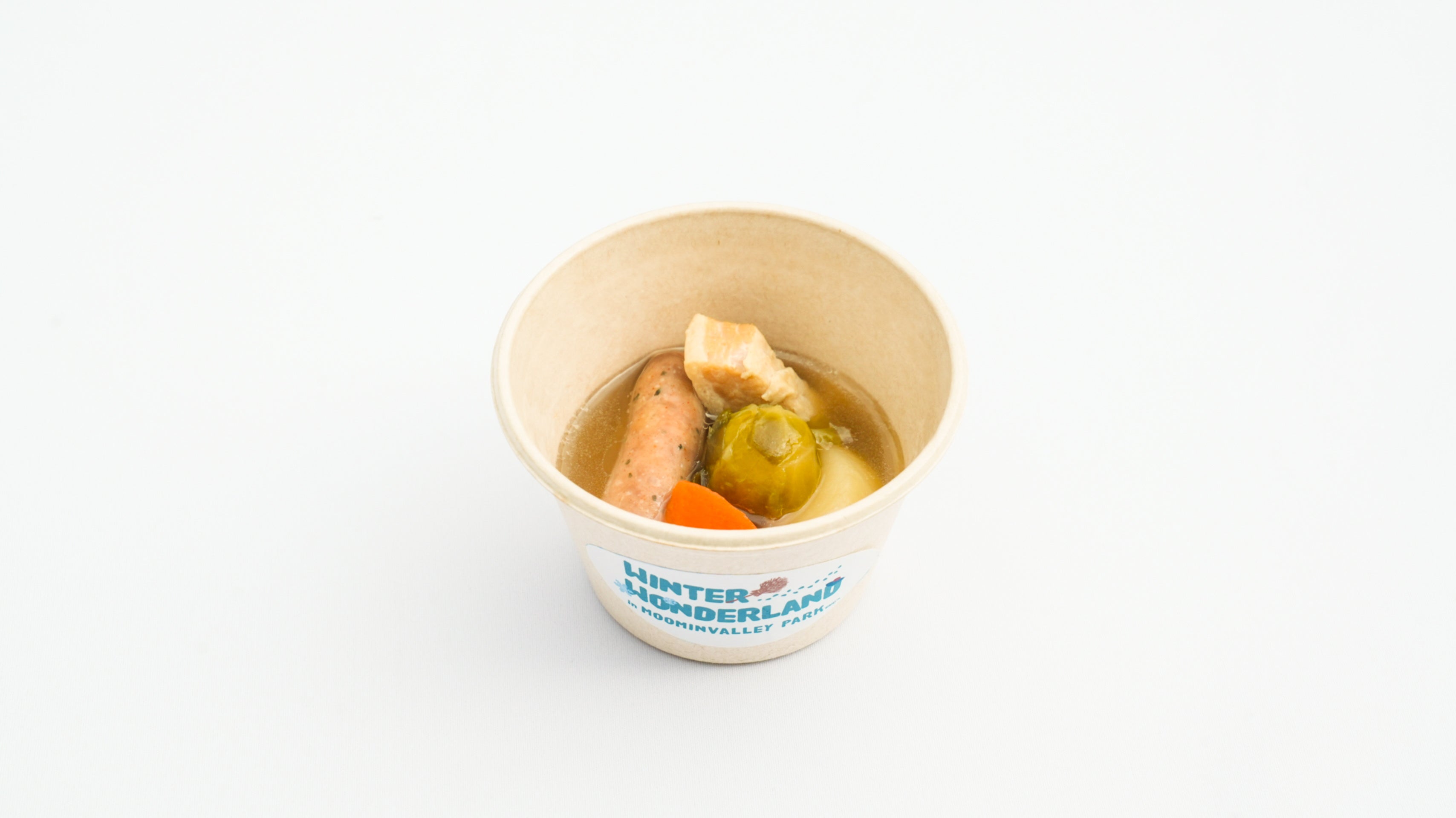 たまねぎや牛肉がごろっと入ったトマトペーストがサクサクのパイ生地に合ったミートパイ。ミートパイ片手にパークをお楽しみください!スープセットでは、3種類のスープからお選びいただけます。