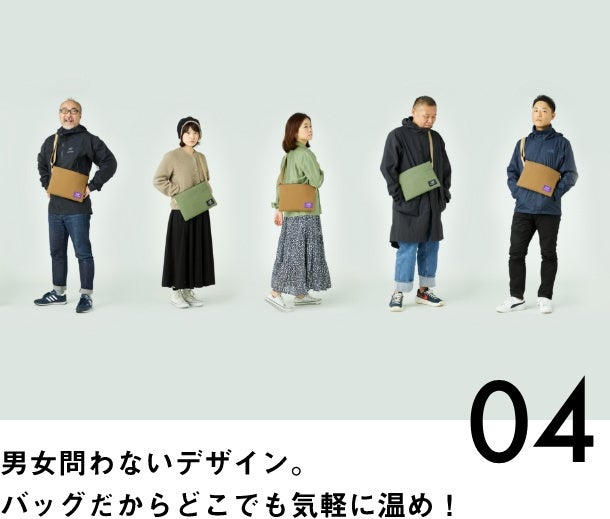 (4)日常の中で使え、誰でも使いやすいデザイン。バッグなので持ち運びができるから、レジャーや外出先で気軽に温めることができ便利。移動時間で温めることができるので時間節約にもなります。