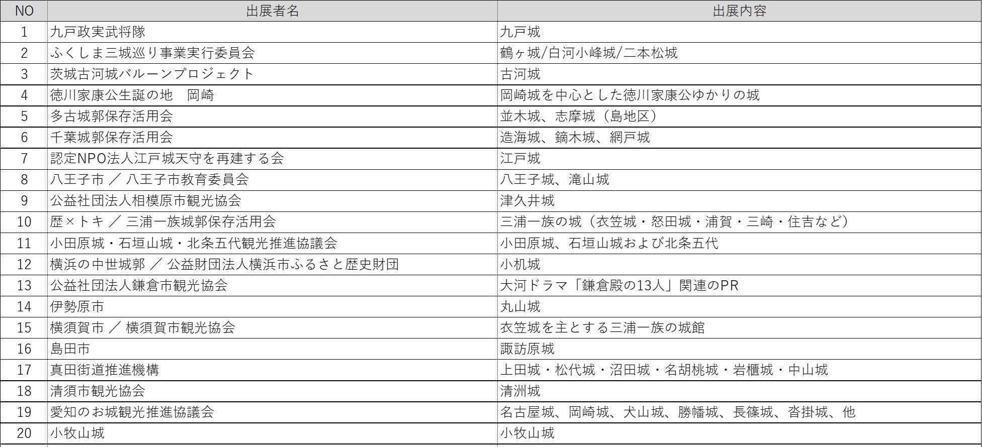 (公益財団法人日本城郭協会、城びと<株式会社東北新社>、株式会社ムラヤマ、パシフィコ横浜)