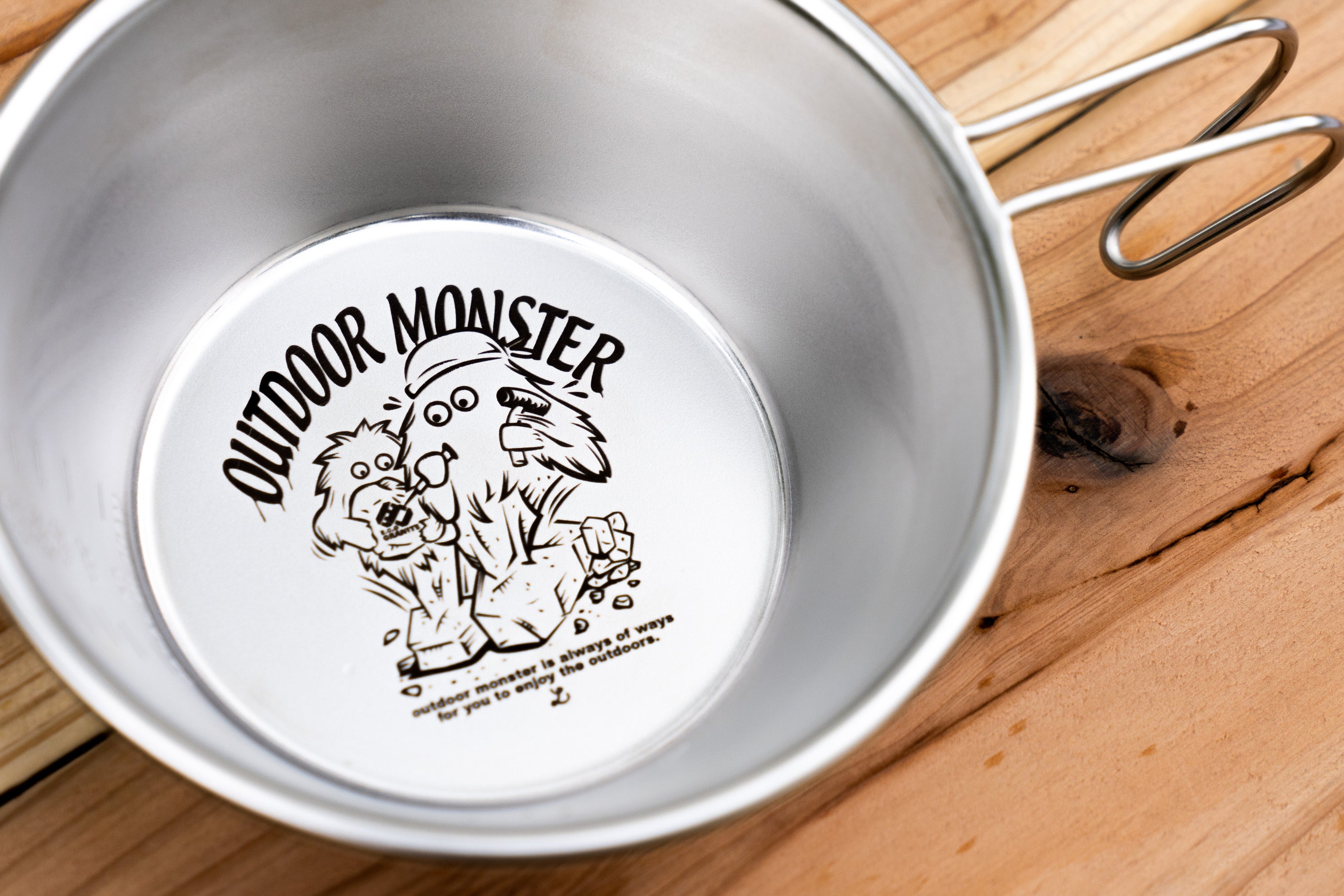 セットのステンレス製シェラカップは「OUTDOOR DESIGN UNIT LOCK」とのコラボによって誕生した、アウトドアモンスター「ISHINOUE-OYAKATA」のオリジナルデザイン。