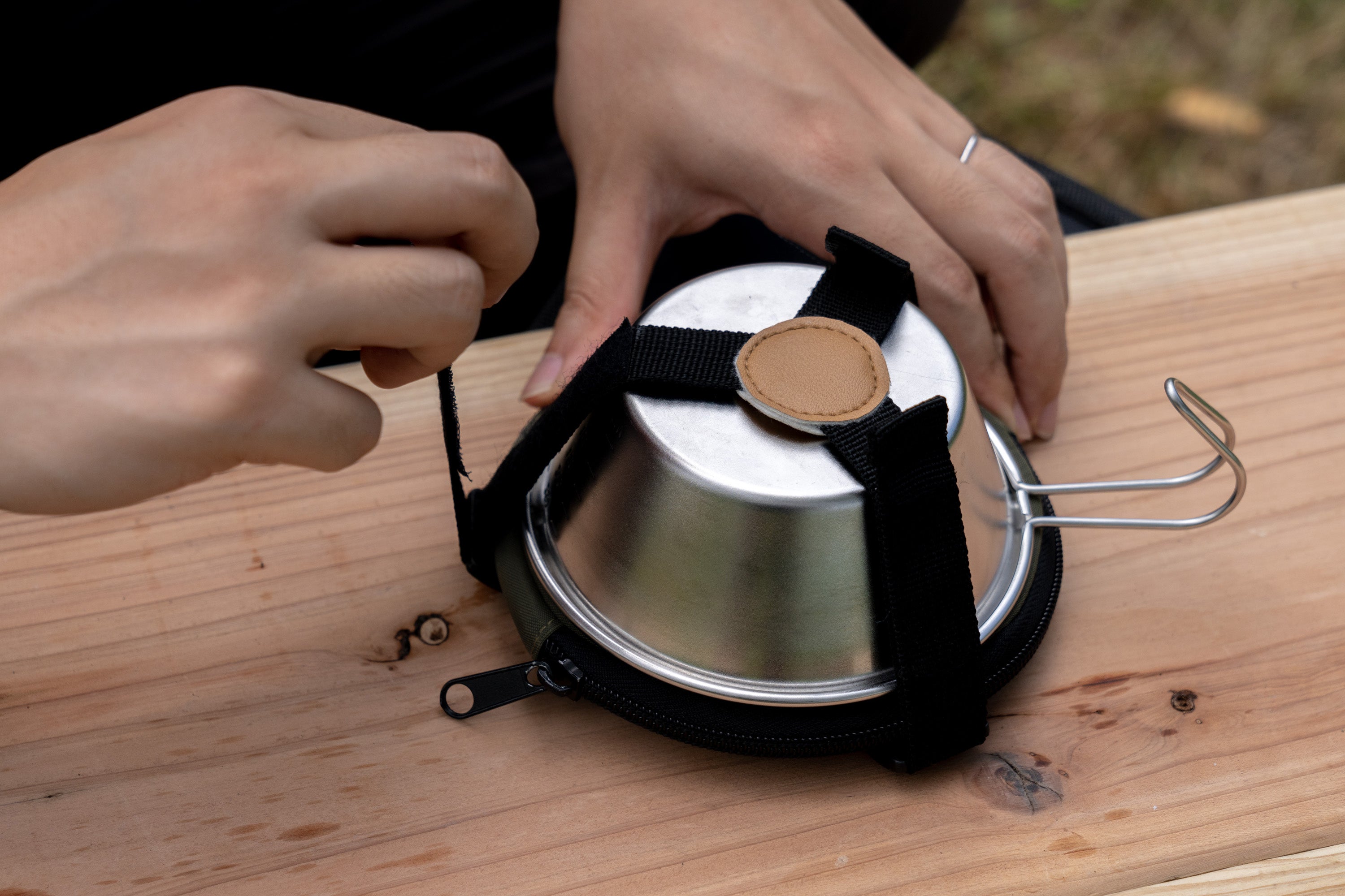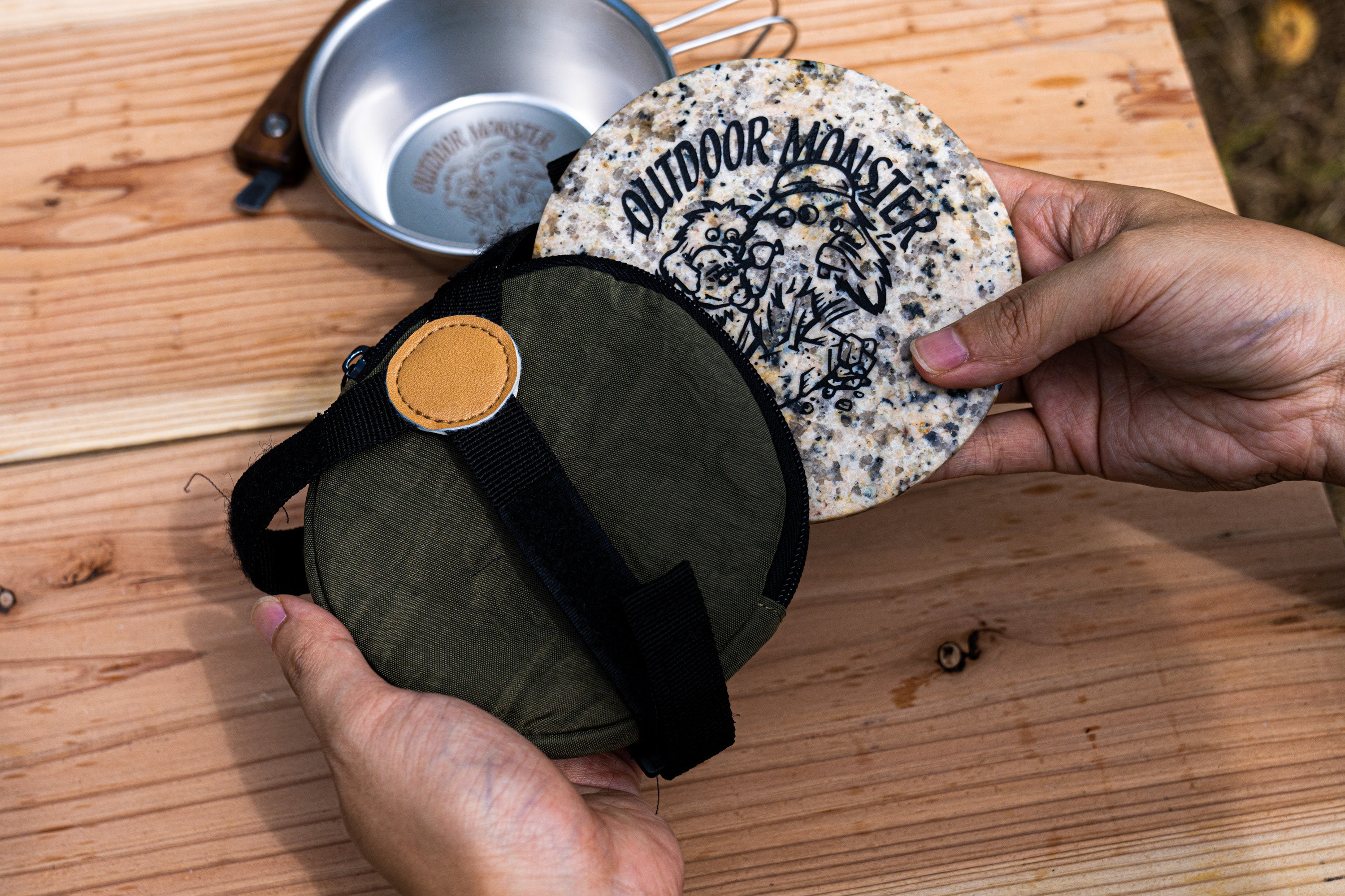 専用ケースはOn the Rocksとシェラカップをあわせて持ち運びしやすいオリジナルケースで、アウトドアシーンでも壊れにくく使いやすい仕様になっています。