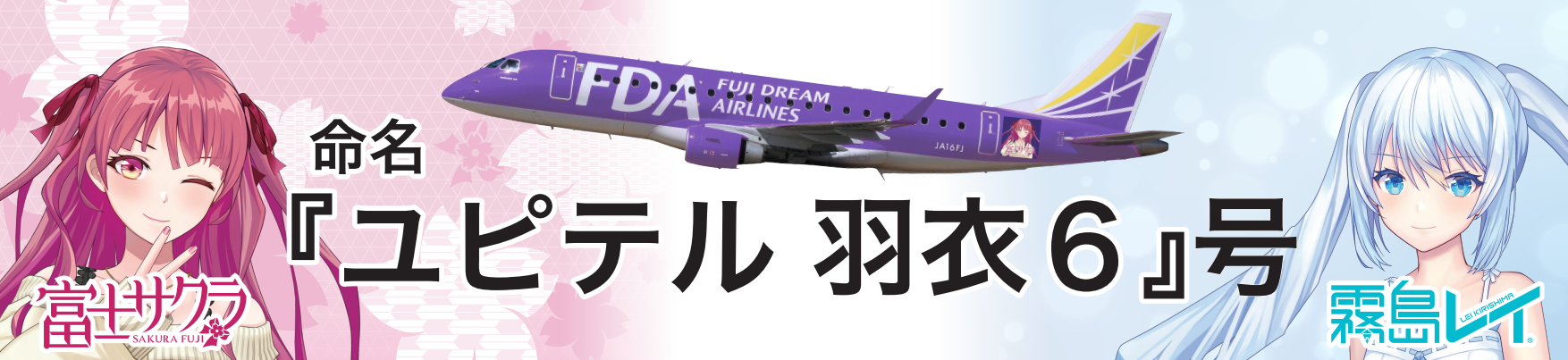 株式会社フジドリームエアラインズ(略称:FDA、本社:静岡県静岡市、代表取締役社長:楠瀬俊一)と株式会社ユピテル(本社:東京都港区、代表取締役会長 兼 CEO:安楽 憲彦)は、FDA16号機(JA16FJ)のネーミングライツ取得に関する契約を締結し、同16号機を『ユピテル 羽衣6号(はごろもしっくすごう)』と命名しました。