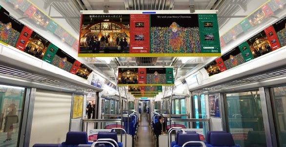 西鉄電車では、「福岡のクリスマスへ行こう!」キャンペーンのポスターで車内を埋め尽くした「クリスマス電車」(広告貸切電車)を運行いたします。また、当社と全国私鉄各社とのアライアンスを活かし、京急電鉄や名古屋鉄道の車両も同様の広告貸切電車の運行を行い、今回の取り組みを域外の方々にも広く知っていただくことで、福岡の街の魅力発信ならびに観光需要の創出を目指してまいります。