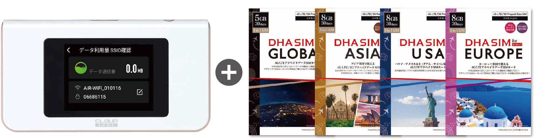 DHA Cloud Wi-Fi + DHA SIM for Global 5GB30日 104ヶ国周遊SIMカードセット