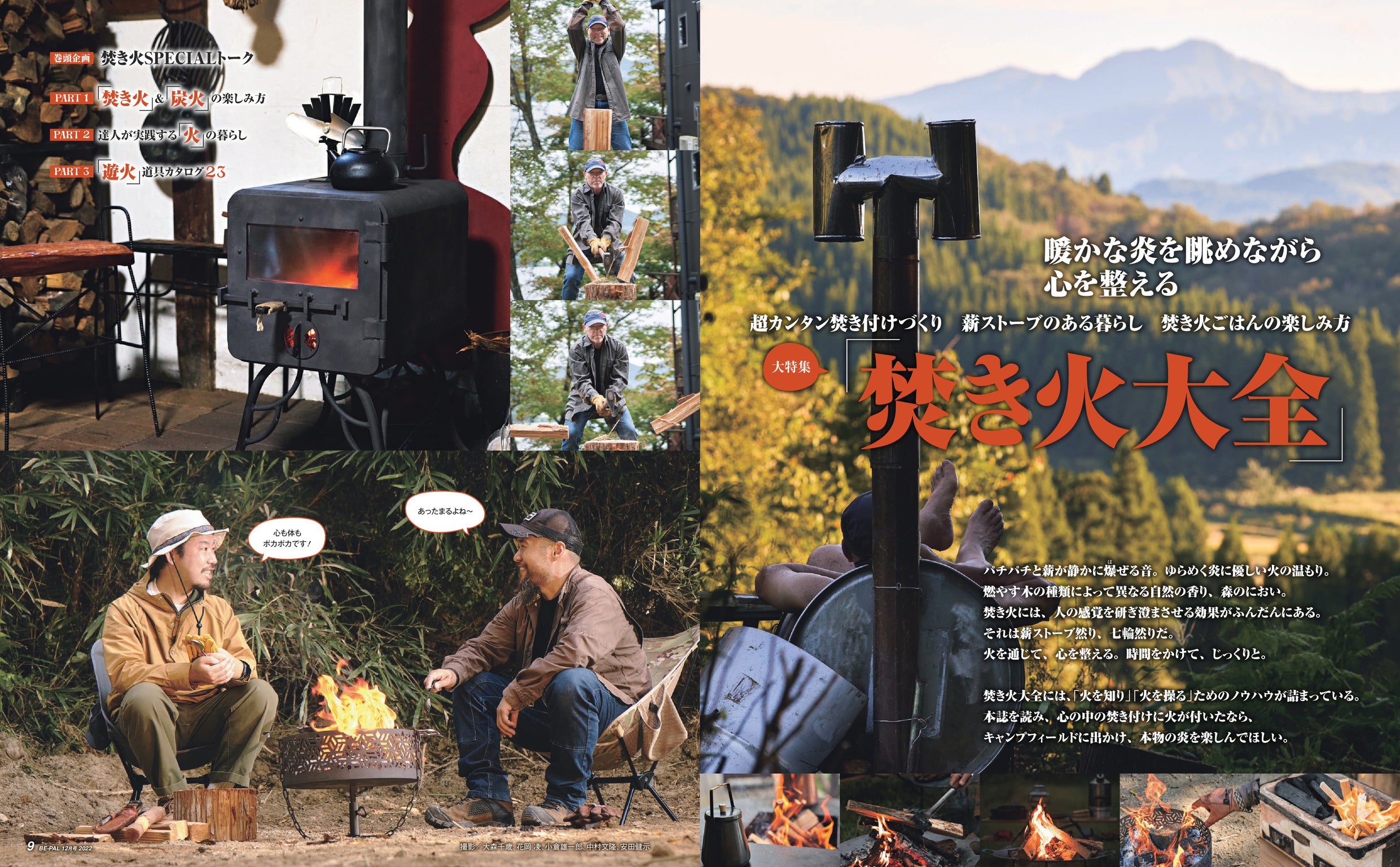 さらに、今号の大特集は「暖かな炎を眺めながら心を整える『焚き火大全』」。