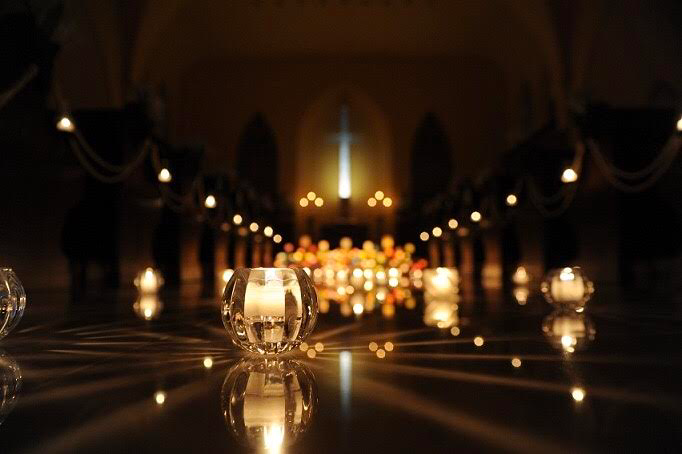 キャンドルナイト当日は建物の灯りを消し、キャンドルの揺らめく光に包まれた幻想的な礼拝堂で、大切な人とロマンティックなクリスマスの時をお過ごしいただけます。