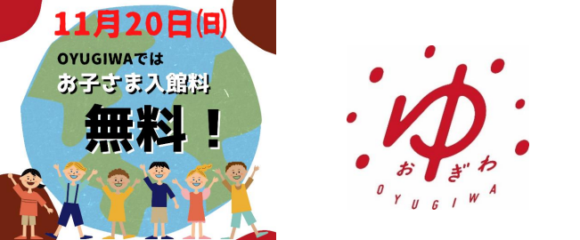 OYUGIWA各店では、11月20日(日)「世界こどもの日」限定で、12歳までのお子さまの入館料が無料になる「世界こどもの日 OYUGIWAこども無料デー」を開催します。