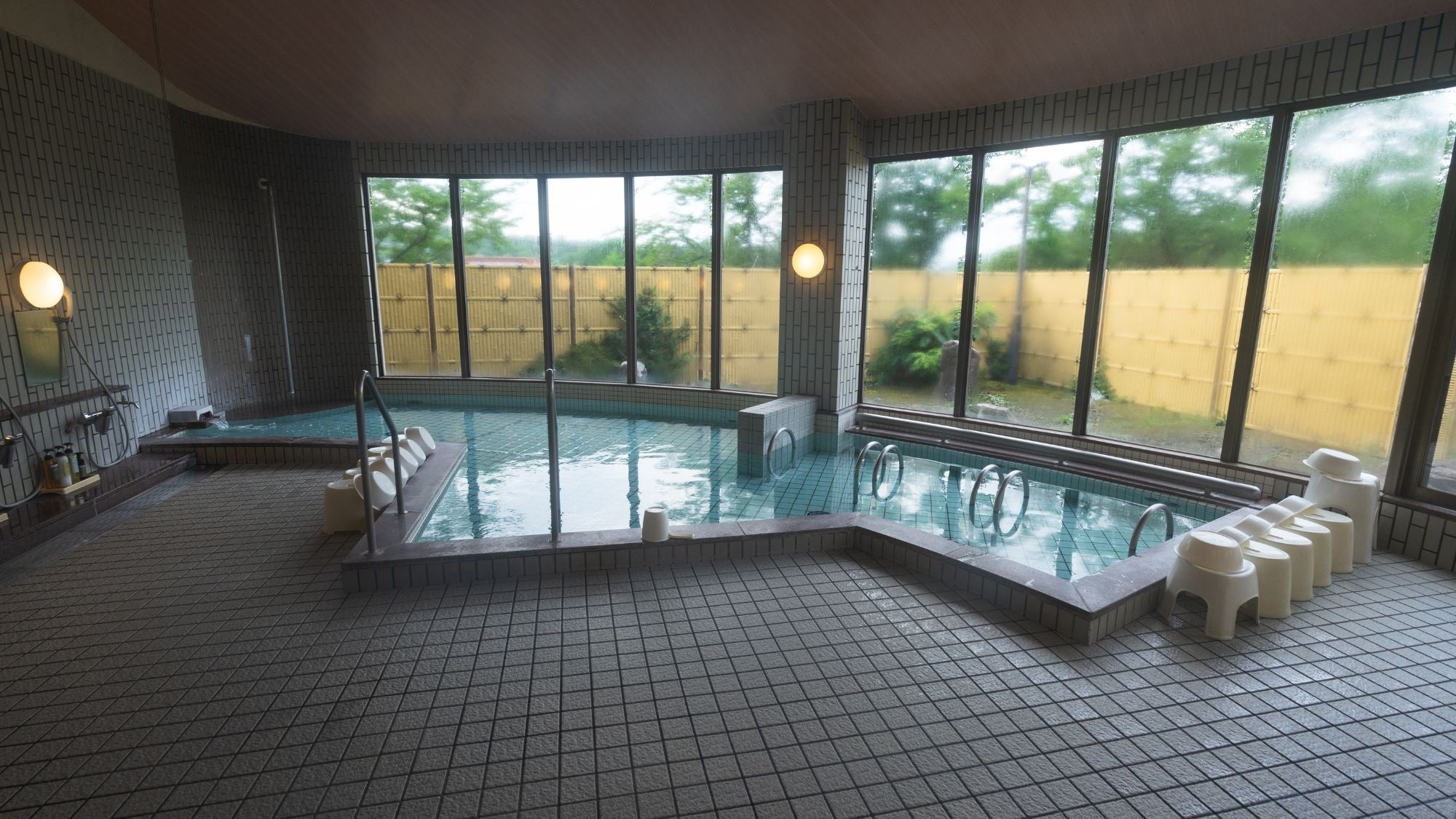 グランピング宿泊者はホテル三河 海陽閣の温泉を利用することができ、広い浴場と壮大な三河湾の景色に癒されながら、心も身体もリラックス。