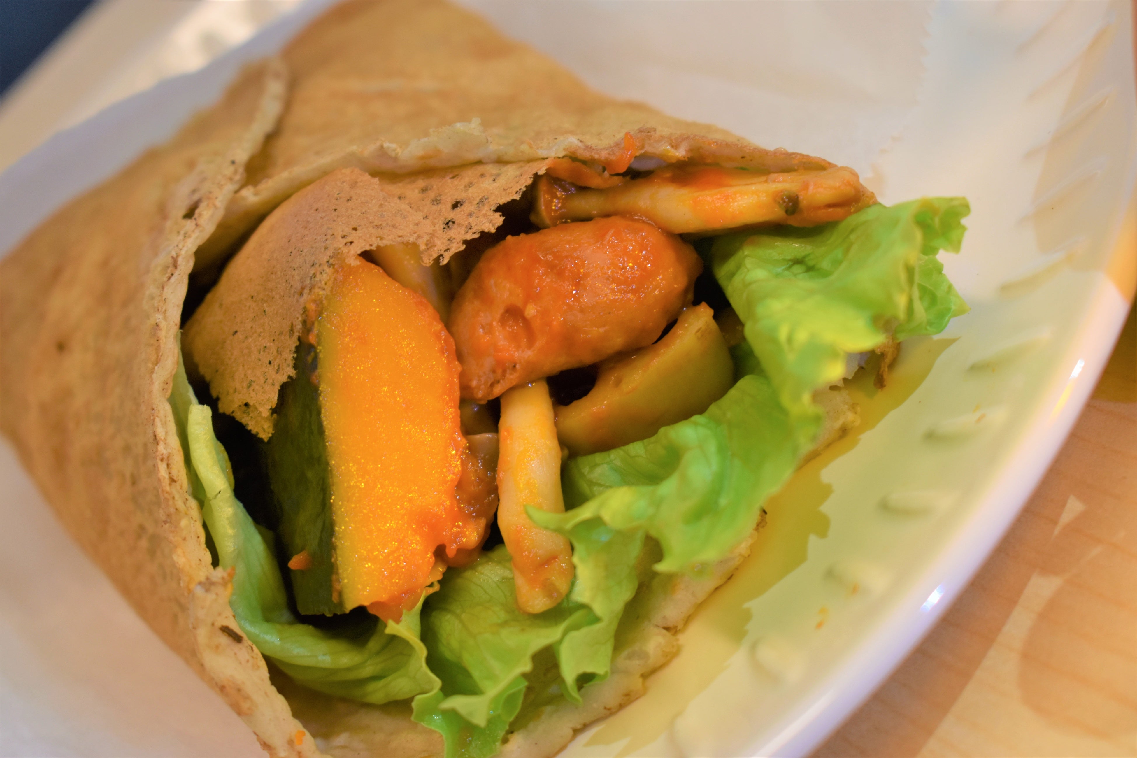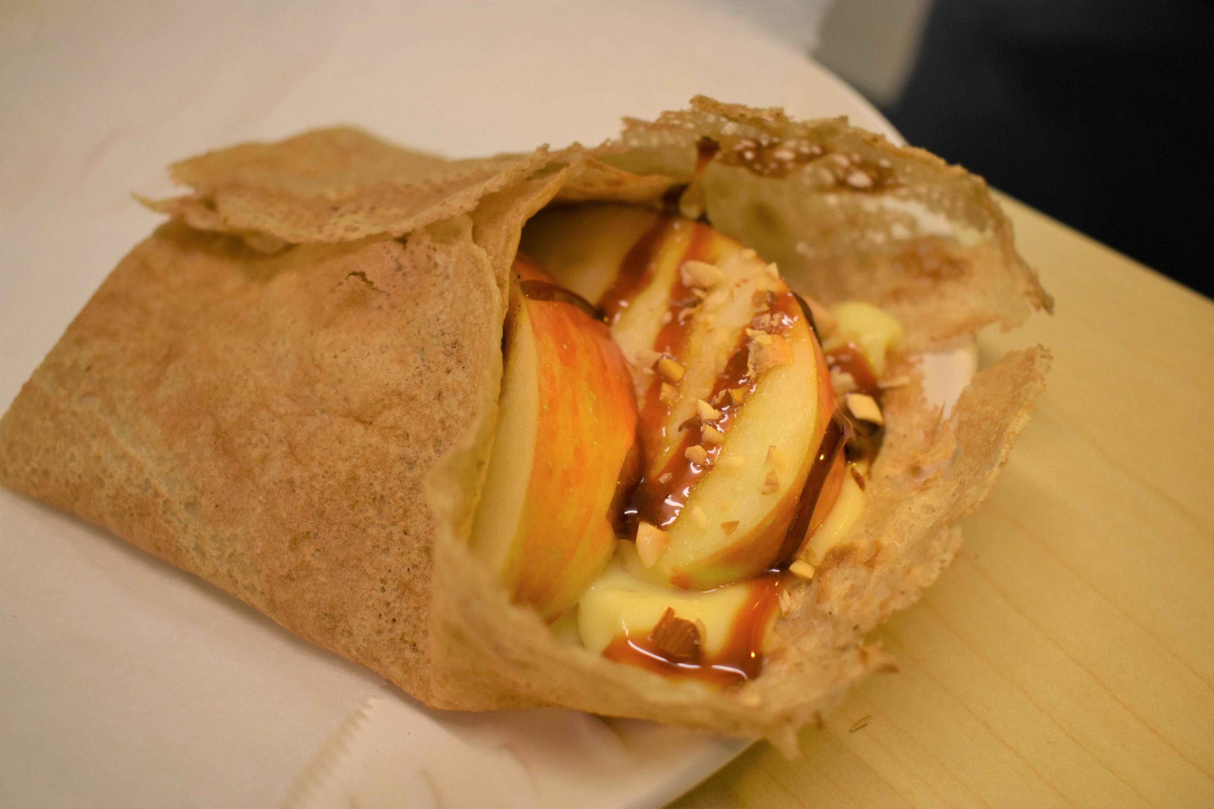 ①「伊那谷を食べよう!」をテーマに、伊那谷産のそば粉やカボチャなどの地元の食材を使った伊那谷ガレット(お食事ガレット・デザートガレット)をお立ち寄りいただきましたお客さまに無料で提供