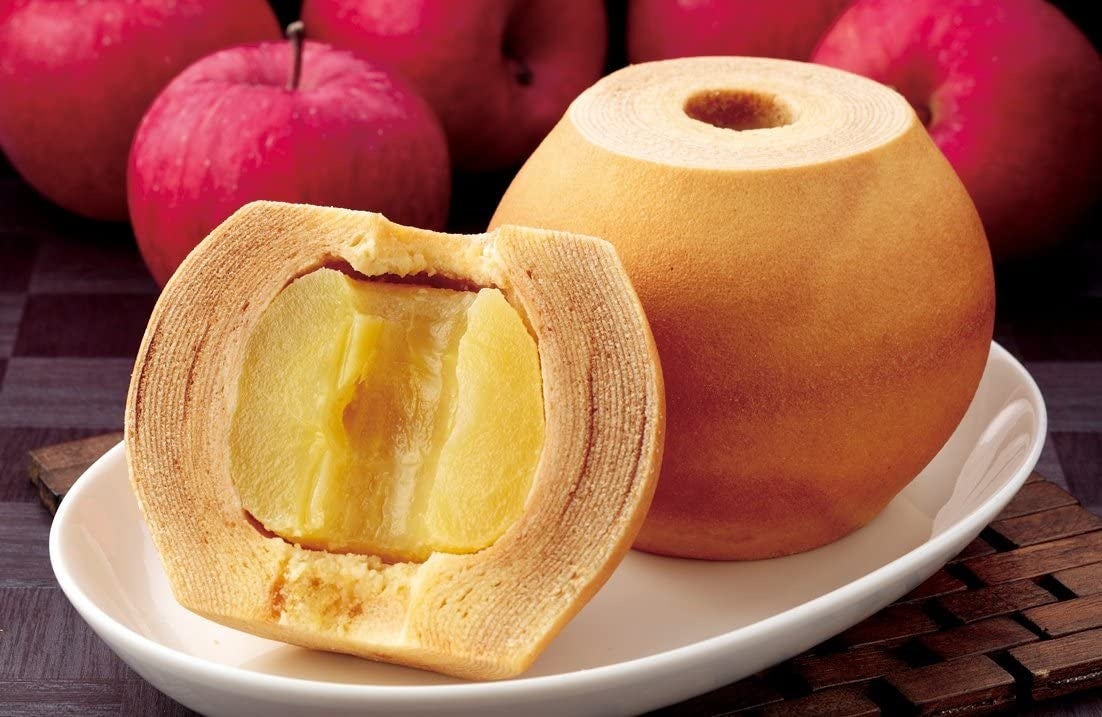 りんご丸ごと1個をバームクーヘンで1層1層丁寧に包み込んだお菓子です。