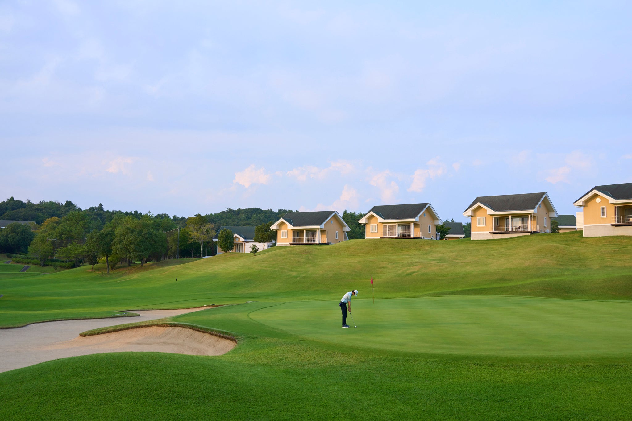 眼前にフェアウェイが広がり、ゴルフ場に暮らしているかのような非日常空間が味わえるヴィラタイプのホテル。ヴィラ内にある天然温泉は24時間利用可能。