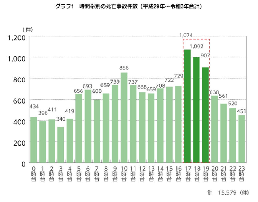 視界が悪い夜道は、大変危険です。ドライバー・歩行者ともに、夜道で事故の危険を感じ、ヒヤッとした経験がある方も多いでしょう。警察庁最新のデータより、重大な交通事故は、夕方から夜間にかけて多発しております。