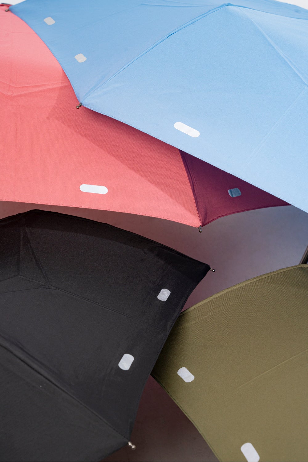 また傘の周り全方面に反射材を使用しており、車がどの方向から来ても反射でき、歩行者が気付かれやすいようになります。