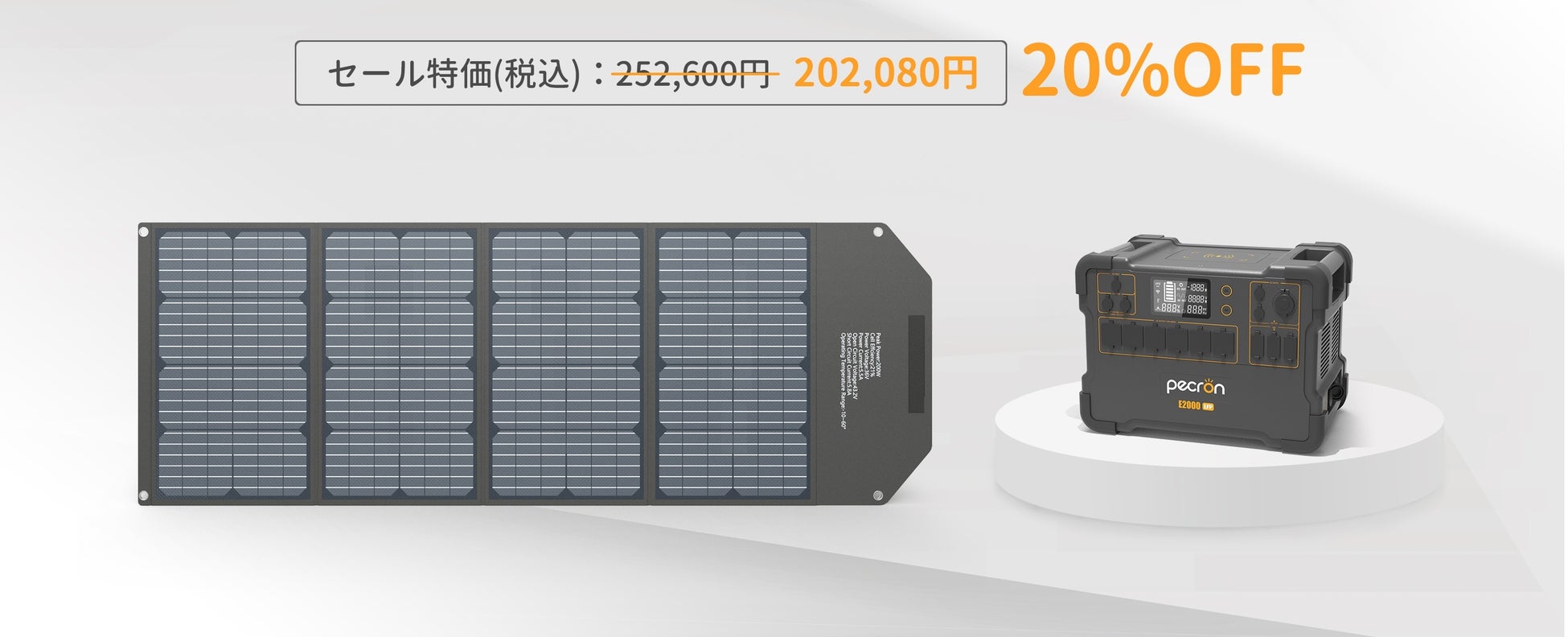 ◆ Pecron E2000LFP ポータブル電源+2枚 200Wソーラーパネル セット