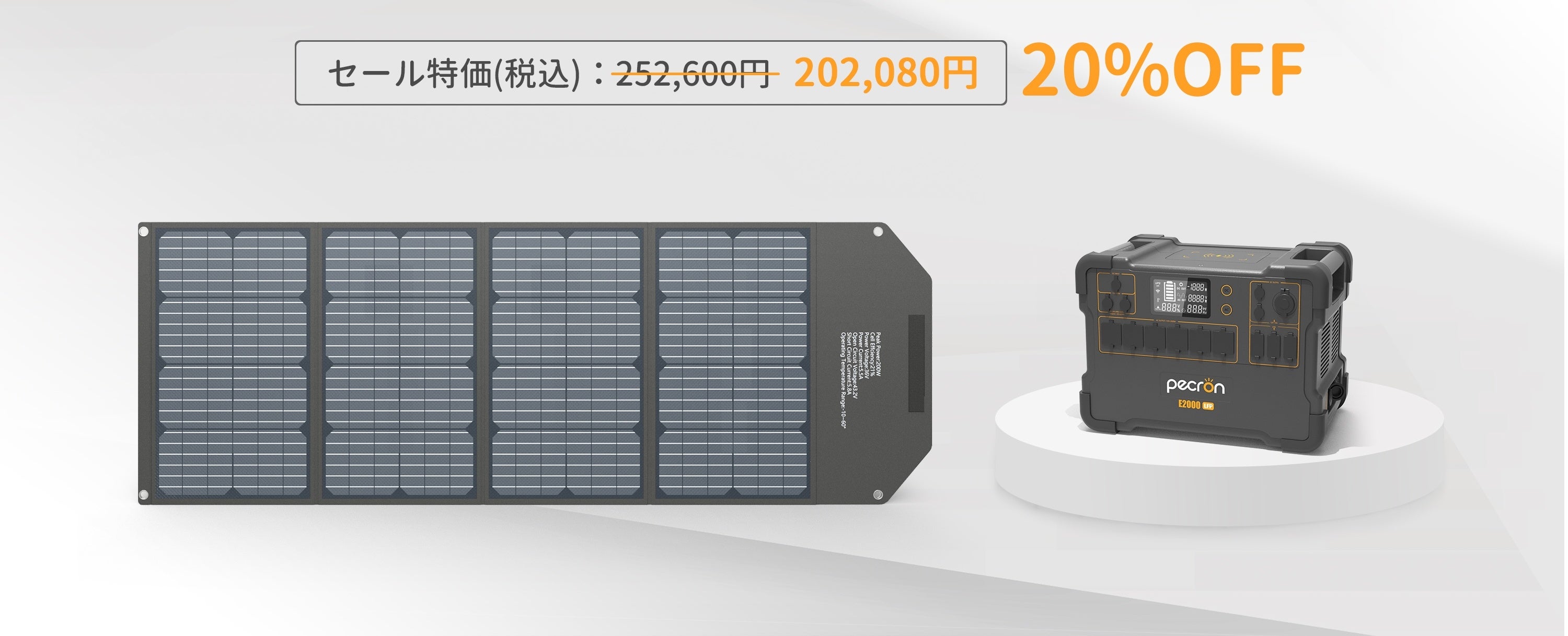 ◆ Pecron E2000LFP ポータブル電源+2枚 200Wソーラーパネル セット