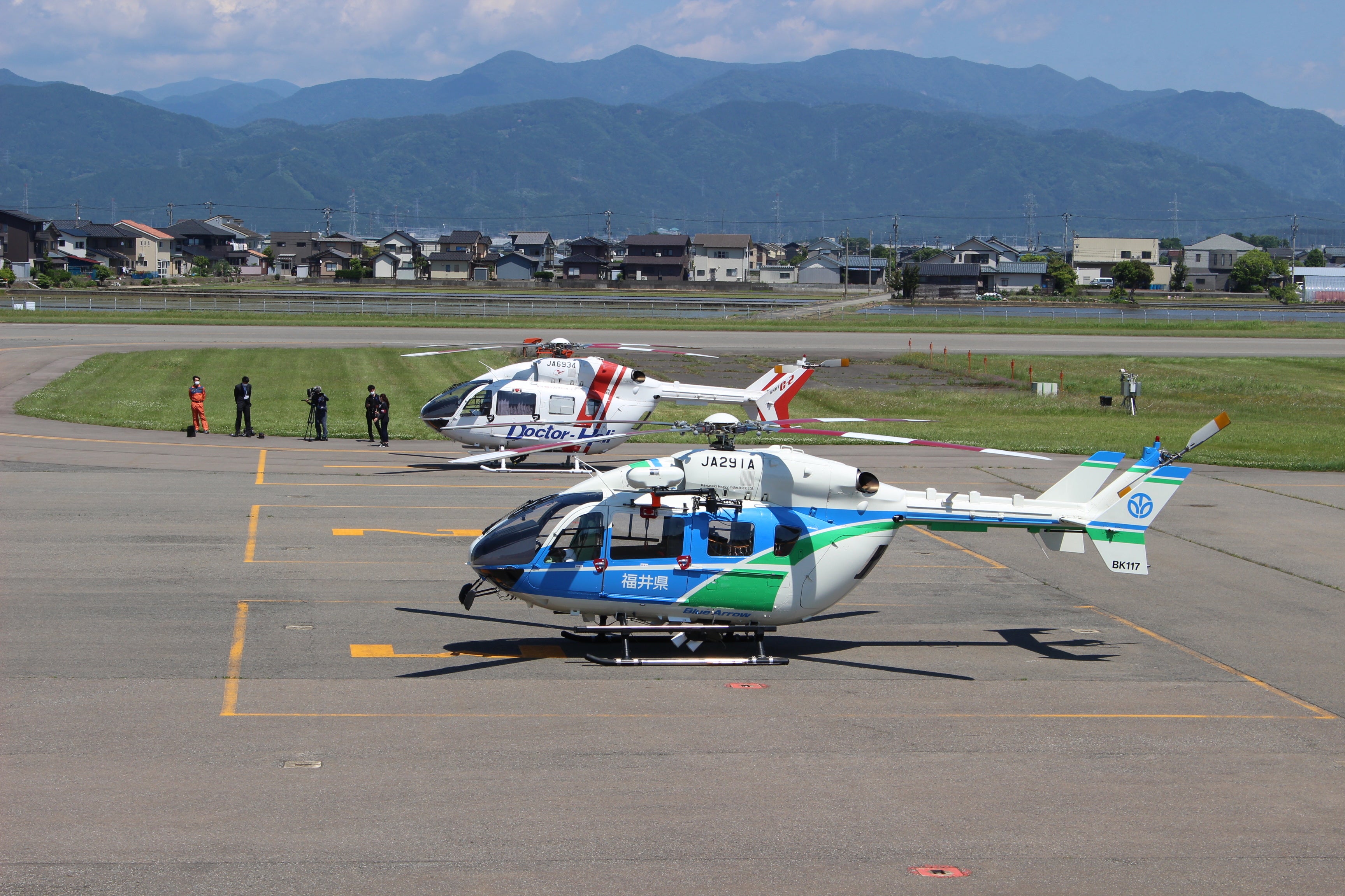 同時に福井県防災航空隊が現場到着。降下隊員より4名の要救助者を確認。低体温の要救助者を機内収容後、残り3名は健常者のため吊り上げ移動にてコース内に移動させ、地上消防隊へ引継ぎ。現場を離脱し、スキージャム勝山第4駐車場に着陸。ドクターヘリに要救助者を引継ぎしドクターヘリは福井県立病院へ搬送する。