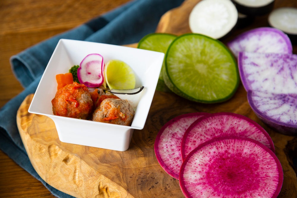・うまボールプレート(主な食材:馬肉、エノキ、トマトジュース)