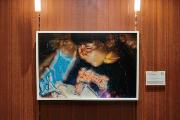 代表作「#smudge」シリーズは、写真や映像の一部を、ソフトのツールを使って、抽象絵画の筆の動き(ブラシストローク)のように表現しています。ソフトのツールは、一般的には写真の修正などに使われますが、小林はそれを過剰に用いて写真を絵の具のパレットのように扱いイメージを変容させます。smudge によるブラシストロークは、写真と絵画の境界線を跨ぐ身体性の痕跡であり、ブラシストロークがはいることにより、人の動きが持つ美しさや遊びが感じられます。