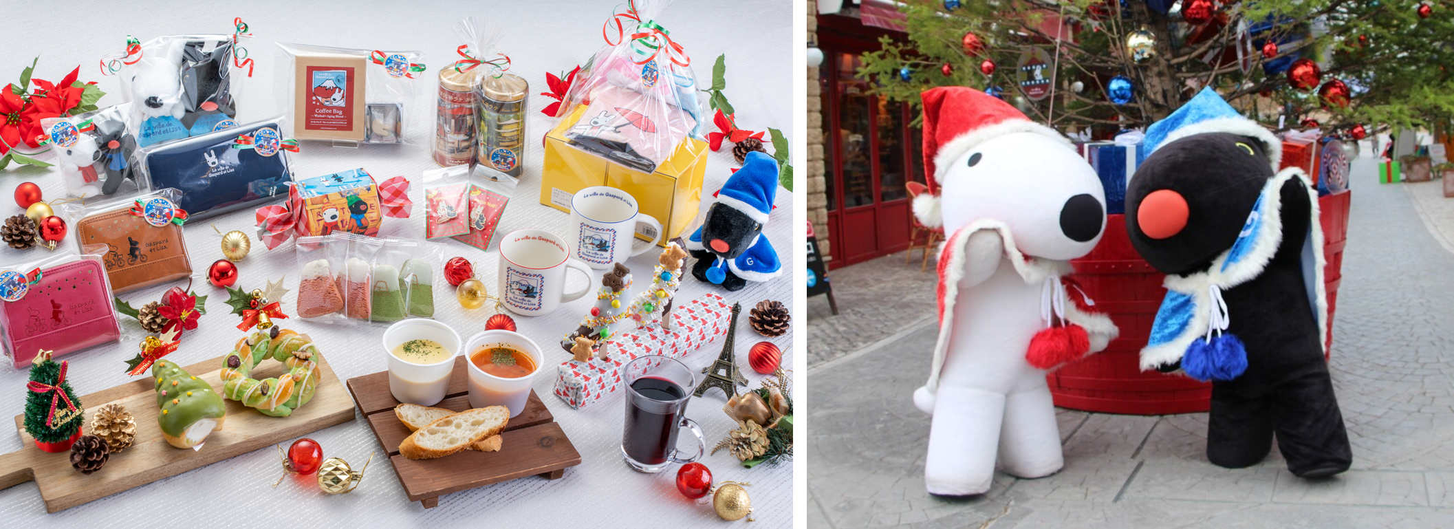 12月25日(日)までの期間、タウン内の各店舗ではクリスマスツリーやリースに見立てたホテル仕込みの焼きたてパンをはじめ、ホワイトチョコや生クリームで雪化粧されたチョコバナナ、寒い冬にほっこりあたたまるラスク付きスープなど味も見た目も楽しめるメニューが勢揃いいたします。ショップでは、クリスマス限定ギフトとしてオリジナルパッケージのコーヒーとシュガーのセット商品を販売するほかリサとガスパールのマグカップ、タオルなどの人気商品もクリスマスギフト用のラッピングに包まれて店頭に並びます。大切な人へのプレゼントとしてはもちろん、自分へのちょっとしたご褒美にもピッタリです。