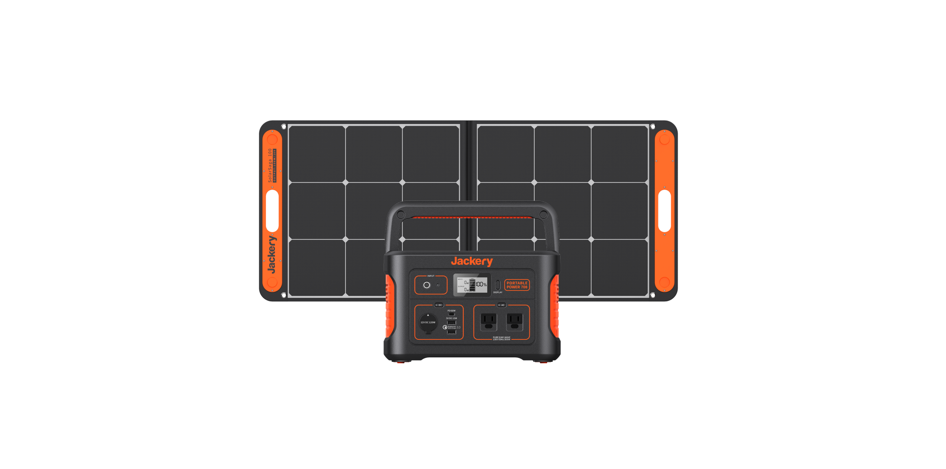 Jackery ポータブル電源 708とソーラーパネルSolarSaga 100をセットにした商品。