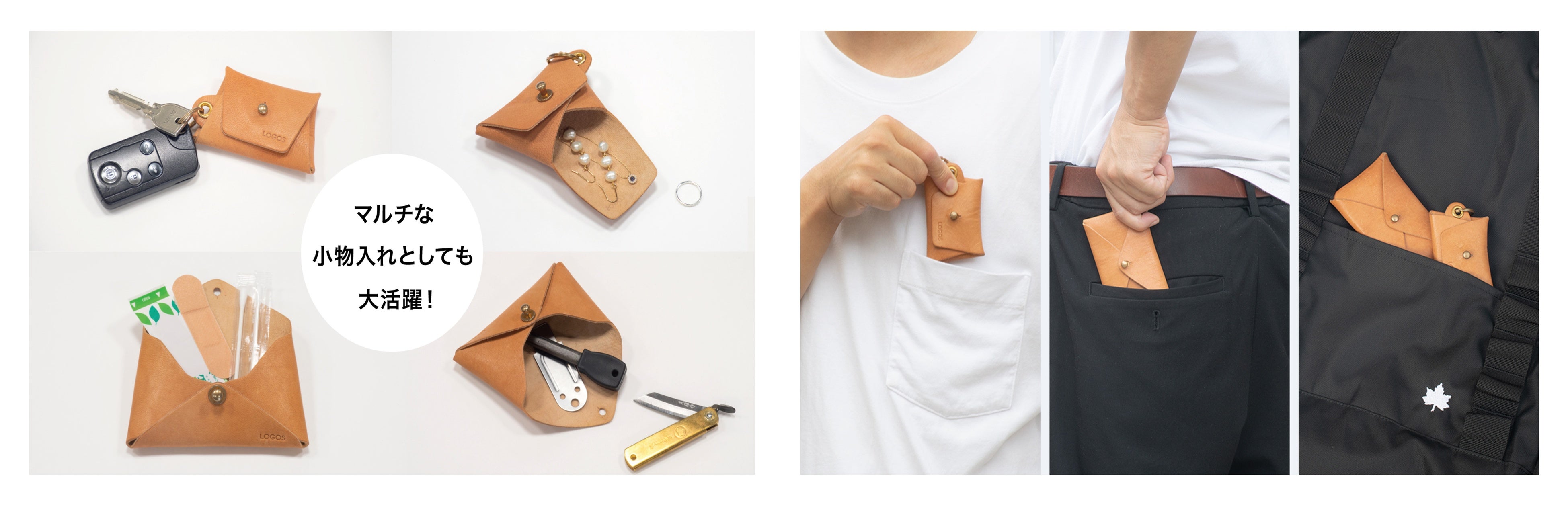 通常なら廃棄処分されるニホンジカの革を有効活用して作られた、実用性に優れた小物入れ。衣服やバッグのポケットに入るサイズなので、ちょっとしたお出かけに最適。非常用の小銭や薬などの保管にも便利。