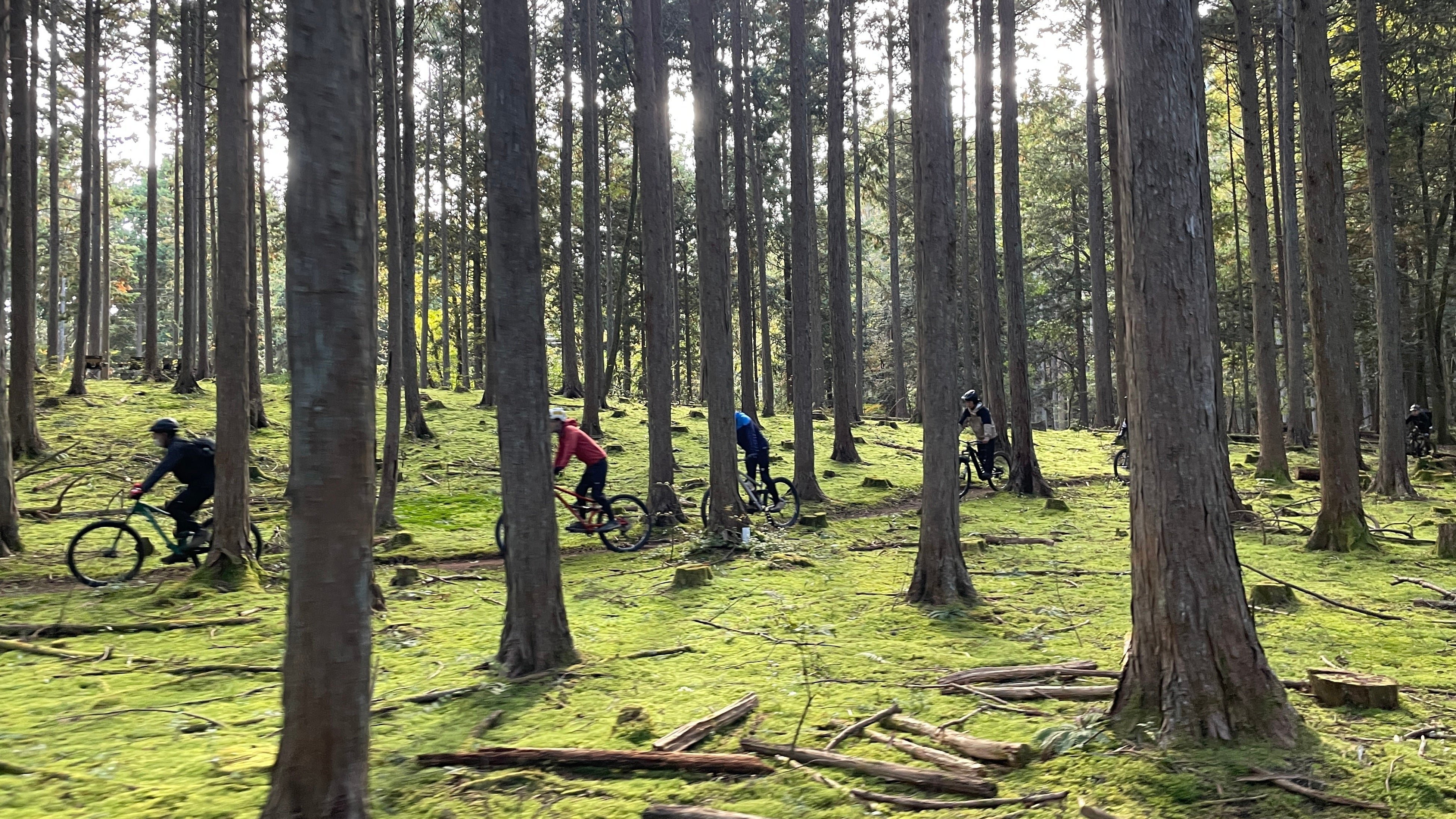 山梨の山林をMTBで気持ちよく駆け抜ける入会説明会参加者たち