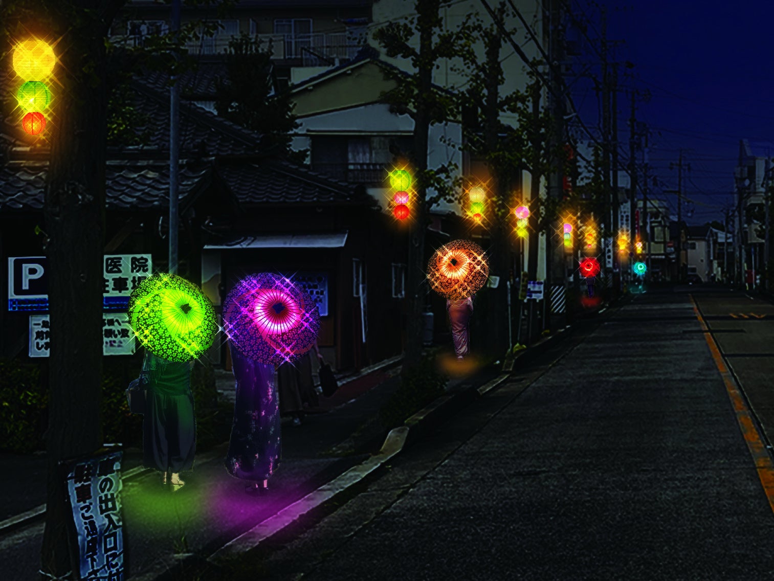 今回のライトアップをより楽しんでいただくため、受付では「光る和傘(有料・1組1本・1日20組限定)」のレンタルも行います。