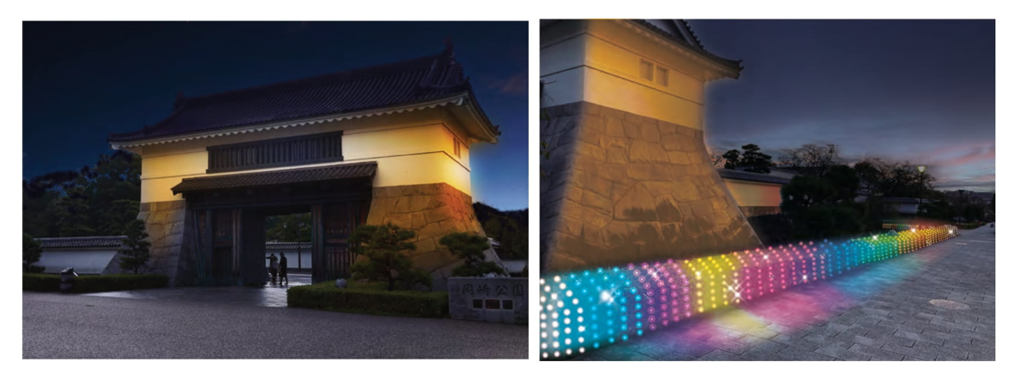 ・岡崎城大手門のライトアップ、インタラクティブな体験型プロジェクションマッピング