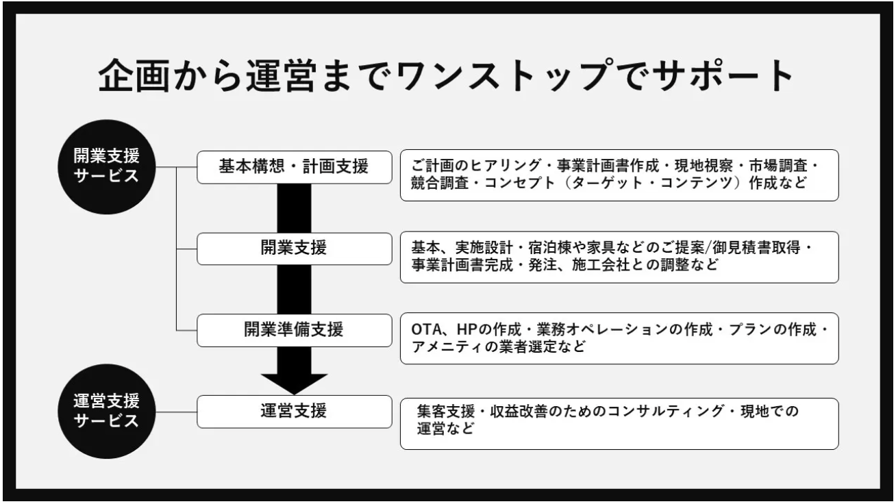 事業内容:リゾートホテル・グランピング施設の開業支援、運営受託、コンサルティング