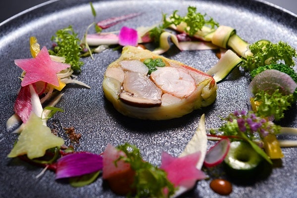 伊勢海老と北海道産帆立 旬野菜のテリーヌ リース仕立て